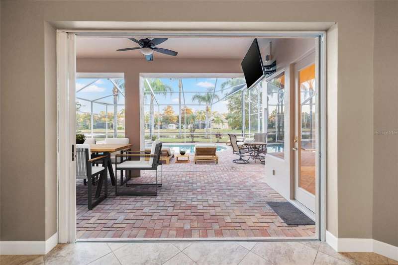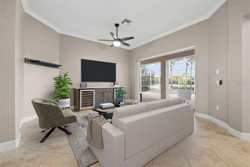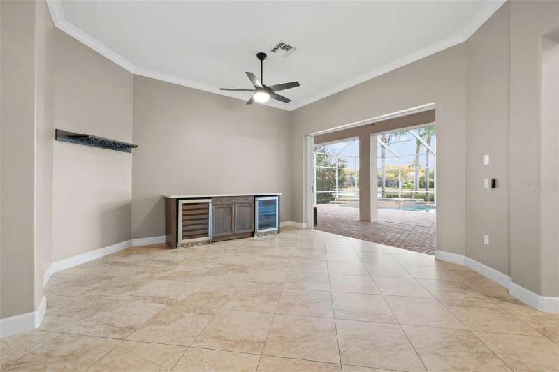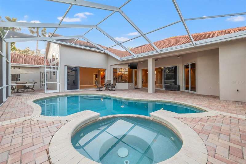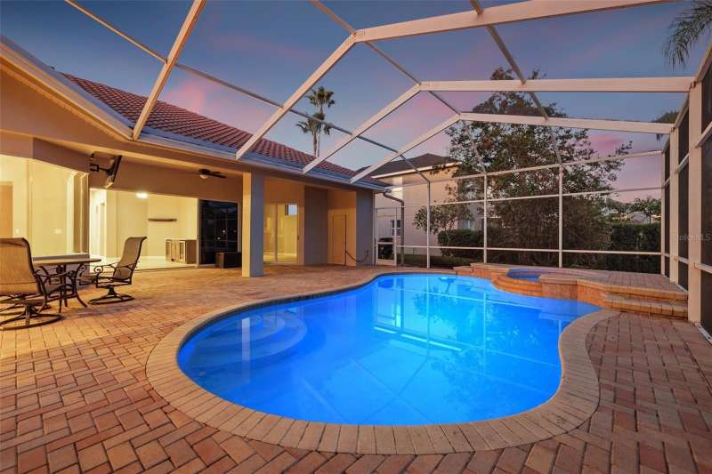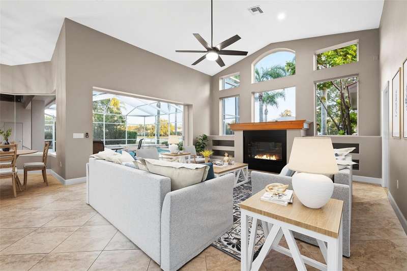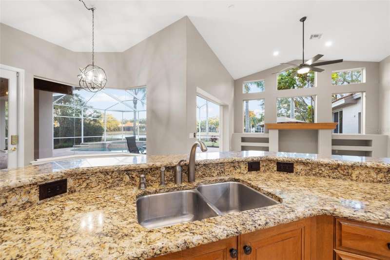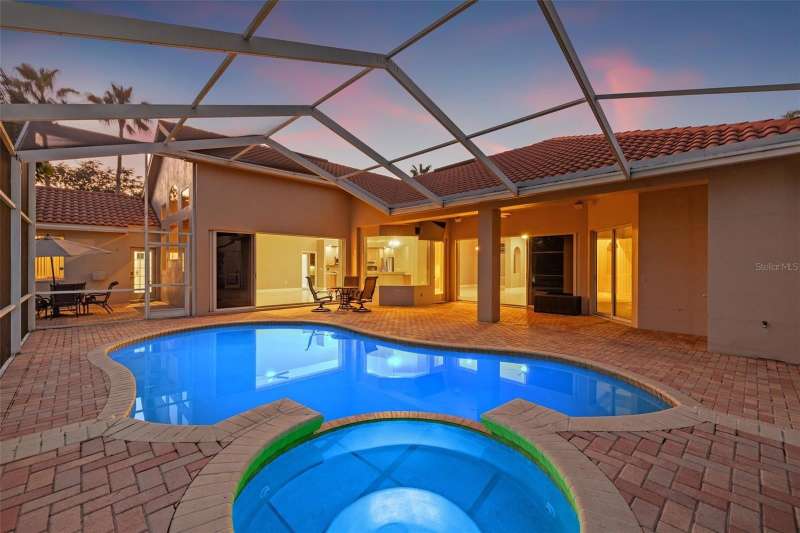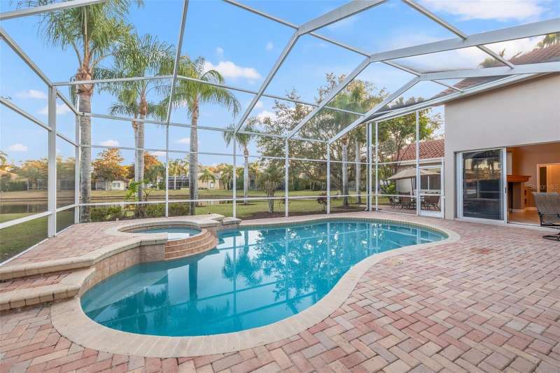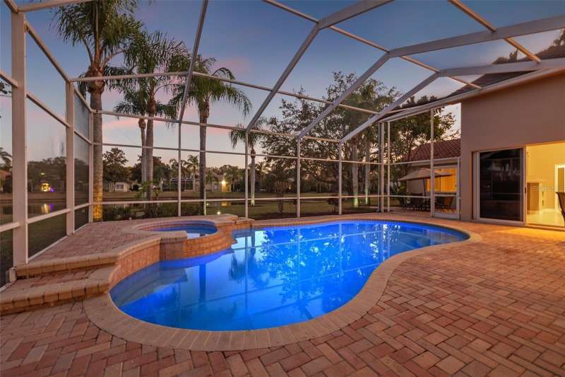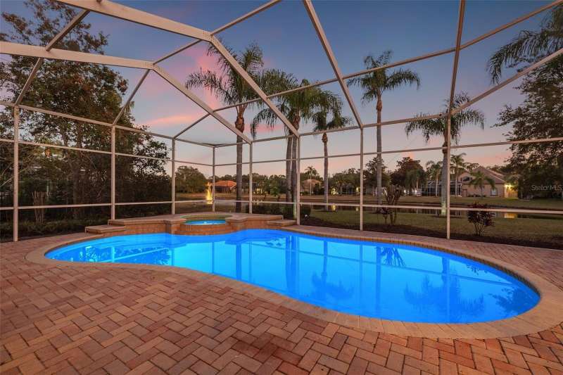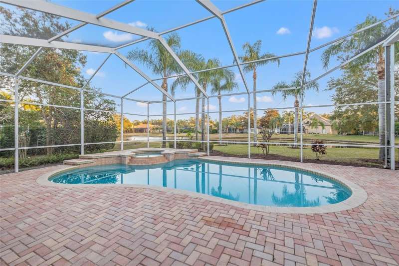 IMPROVED VALUE AS OF 7/14/2025! SELLER TO REPLACE ROOF WITH ACCEPTED CONTRACT! SEE VIRTUAL RENOVATION/STAGED PHOTOS AND BE IMPRESSED! Nestled in the East Lake corridor of Palm Harbor, this stunning pond front home offers the perfect blend of luxury, comfort, and space. Boasting 4 spacious bedrooms, 3 full bathrooms, an office with double-door entry, and a large game room, this home features an expansive open floor plan that seamlessly connects the living areas. The heart of the home is the oversized kitchen, complete with plentiful wood cabinetry, walk-in pantry and elegant stone countertops, ideal for both casual dining and entertaining. Enjoy the Florida lifestyle year-round with a large saltwater pool and spa and patio that overlook the tranquil pond, all enclosed within a screened lanai for ultimate privacy and relaxation. With just under 3,700 square feet of beautifully designed living space, this home is all on one level, making it perfect for easy accessibility. This home also features a large 3-car garage plus a circular driveway for extra parking and easy access. Additional highlights include a recently refreshed interior and exterior paint job, 2 newer HVAC systems, newer appliances, newer lighting fixtures and ceiling fans and a recently added ‘wine bar’ with wine coolers in the main living room. Located in the community of Myrtle Point at Lansbrook, the sought-after serene lakefront community of tree-canopied streets, miles of walking/biking trails, parks and playgrounds. This residence is a rare find in northern Pinellas County, combining elegance, practicality, and breathtaking natural surroundings. Lansbrook is convenient to the Fred Marquis Pinellas Trail (over 30 miles of biking trail from Tarpon Springs to St. Petersburg), within 15 minutes to Honeymoon Island Beach (Dunedin), and within 30 minutes to Tampa International Airport and St. Pete/Clearwater Airport. Don’t miss the opportunity to make this exceptional property your forever home!