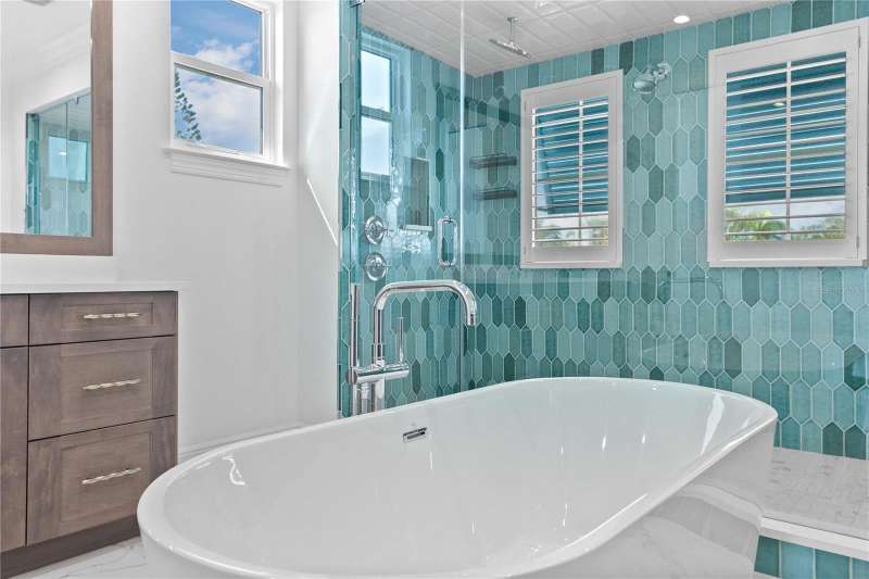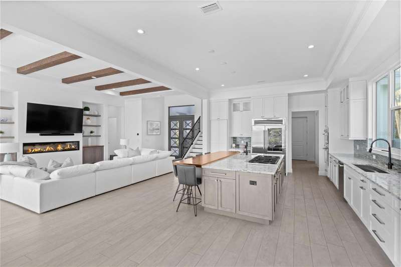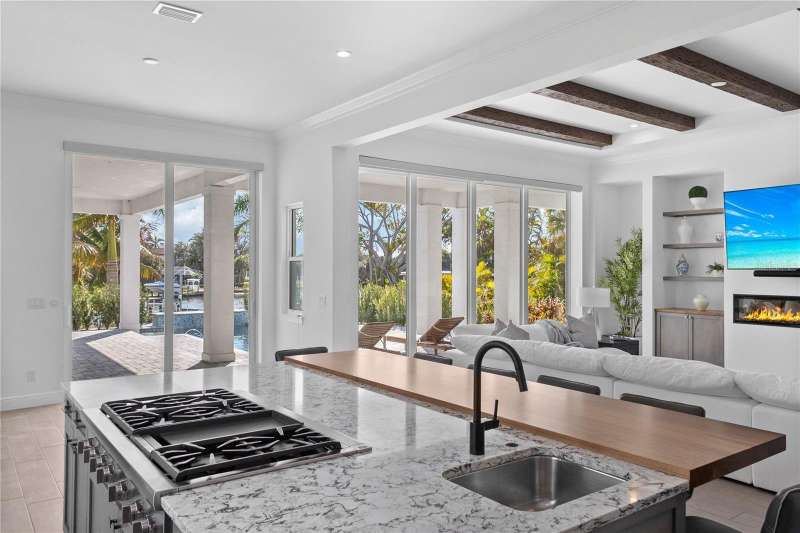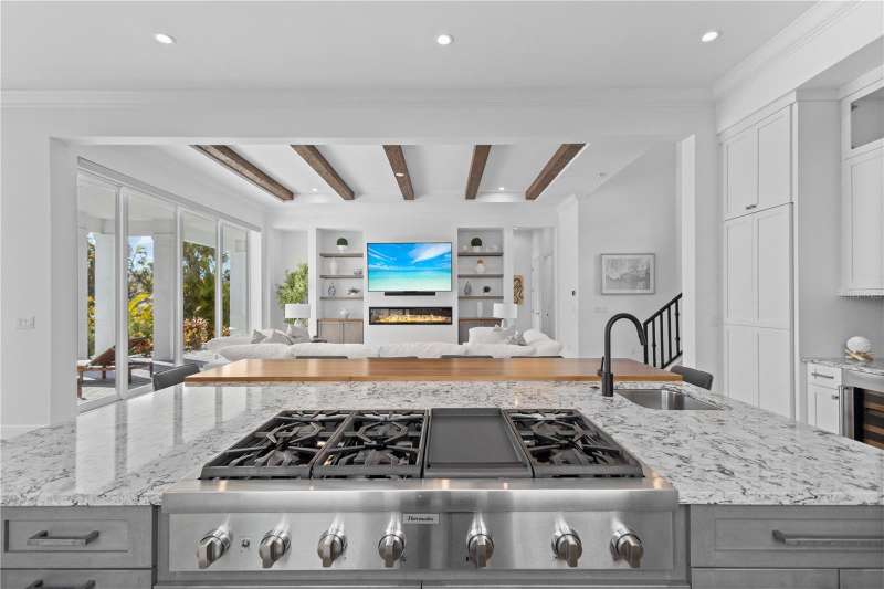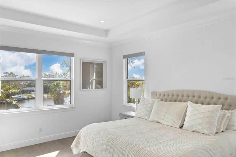 Live the boater’s dream on exclusive North Longboat Key. This spectacular, newly built, coastal contemporary waterfront home provides easy access to the tranquil Intercoastal Waterway, sparkling Sarasota Bay and majestic Gulf of Mexico. Located on a three-quarter acre lot with 133 feet of frontage on a 125-foot-wide canal, this 4,210-SF home features an open floorplan with light-color finishes, quartz hard surfaces and wood-look tile flooring. The large kitchen includes a Sub-Zero glass door refrigerator and Thermador appliances. There is an additional full outdoor kitchen with a gas grill, vent hood and U-Line refrigeration. A spacious first-floor office/den overlooks the waterway. There are 5 ample en-suite bedrooms, 2 half-baths. Relax in the second-floor master suite Jacuzzi tub or take the spiral staircase up to the third-floor observation deck to relish the serene views. The large, heated pool includes a Jacuzzi with a sun shelf for year-round enjoyment. During the cooler months, enjoy a relaxing evening in the great room in front of the fireplace or outdoors near a mesmerizing fire pit. Additional luxury amenities include a 60-foot composite deck with a 10x10 sitting area, fish station, water spigots on dock, bumpers, cleats and underwater lights. Water safety features include a new 133-foot seawall raised 13 and vinyl panel fronts on the 125-foot-wide canal. Make use of the two boat lifts – one 20,000-lb. and one 15,000-lb. and an additional Jet Ski spinner lift to delight in a fun-filled day on the water. This stunning home is ideally located near St. Armands Circle, pristine beaches, fine dining and specialty boutique shops. With professionally landscaped grounds, electric drive security gate and easy access to the bay, this luxurious property is perfect for discerning devotees of the boating lifestyle. This property, along with the beachfront property across the street can be sold together.