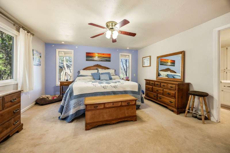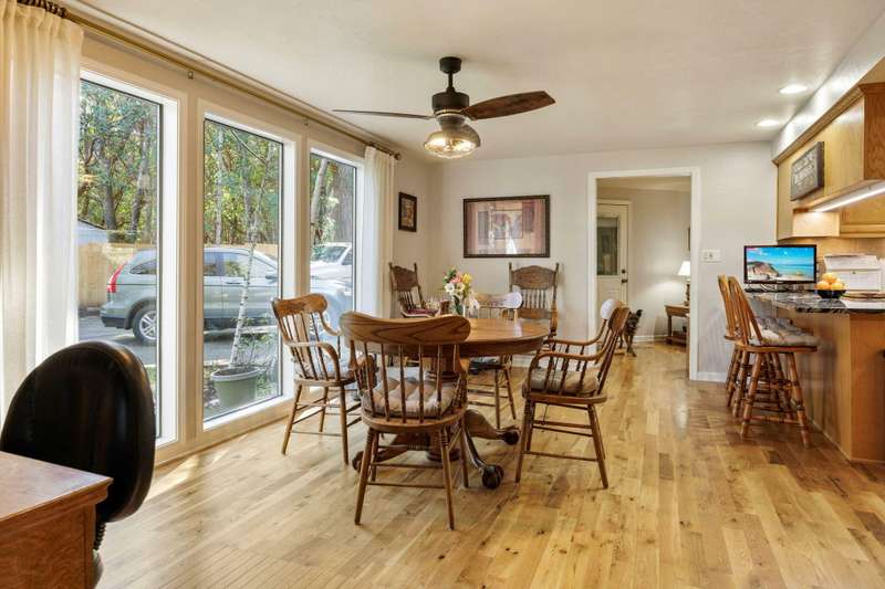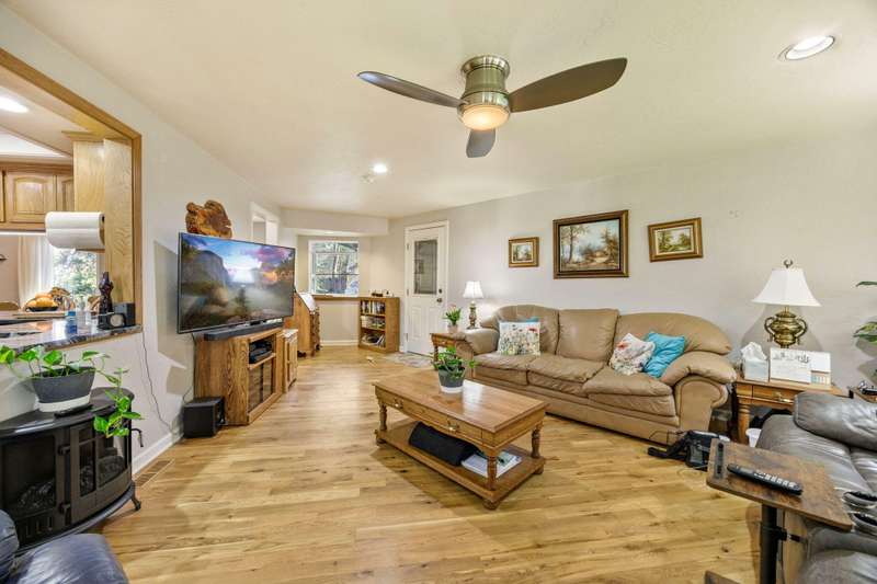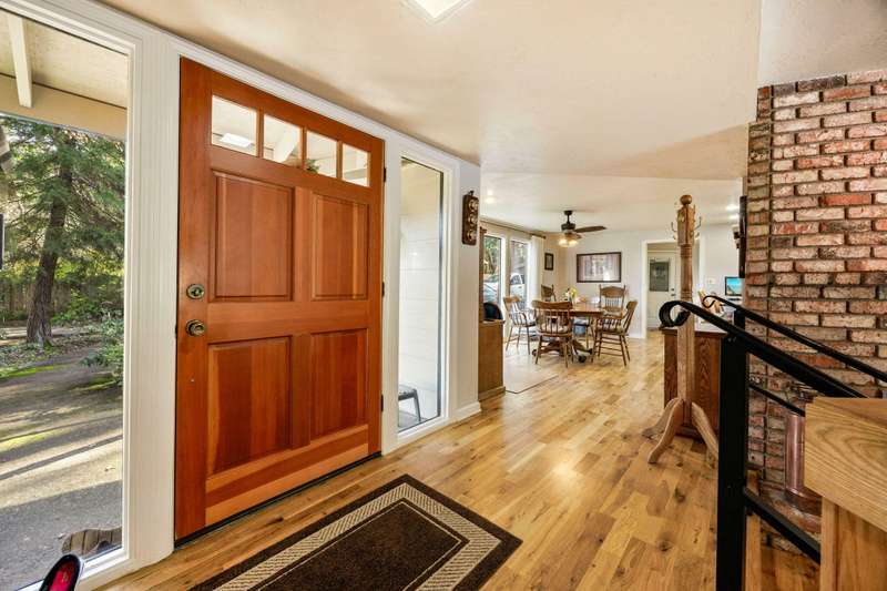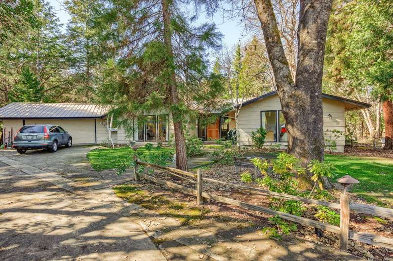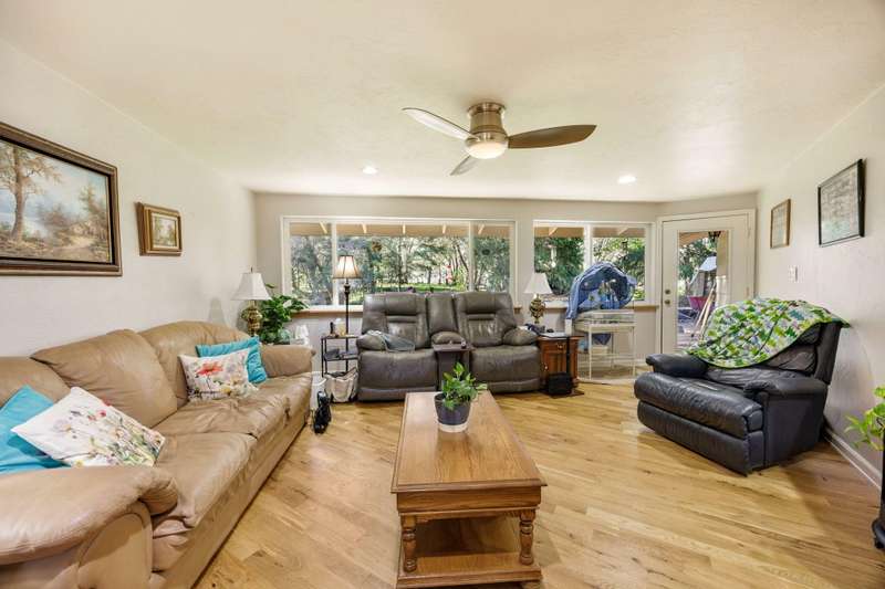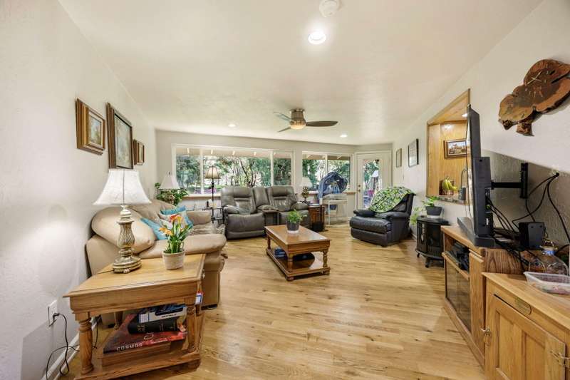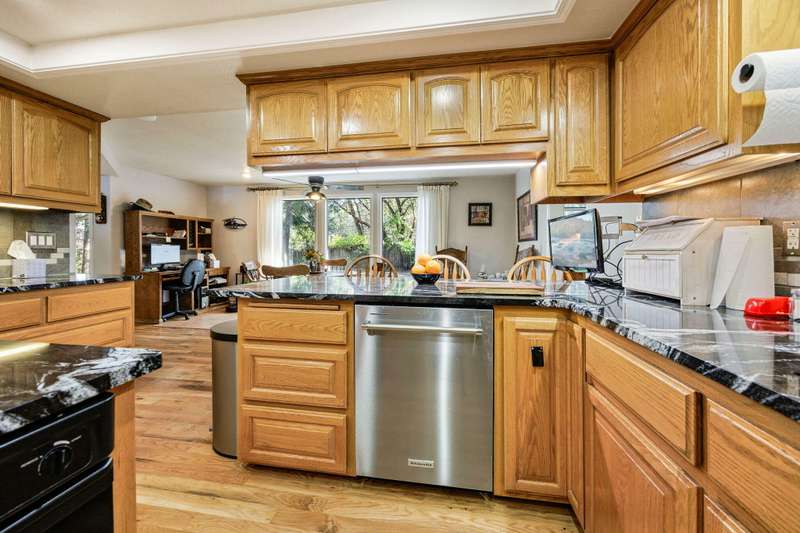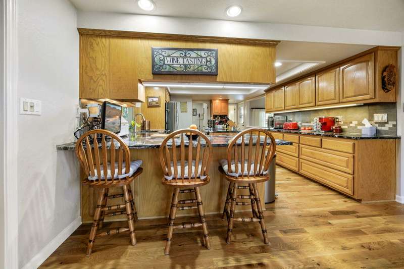BACK ON MARKET, NO FAULT OF PROPERTY! Septic pumped and checked (well 32 gpm). Home is open and bright, step down living room with wood fireplace, the gourmet kitchen has been updated with granite countertops,new cabinets (lots of them!), hardwood floor,instant hot. Dry bar, wine rack, double oven, 2 car attached garage. Sunroom off kitchen could be a third bedroom or family room, apprx. 350 sq ft. not included in total sq st.. Attic fan on a thermostat. Master suite has a jetted tub, cedar lined closet, double vanity. PLUS 24x50 shop, incl. overhead trolley crane, 240 power (for welding) and 110 power, 4 cylinder compressor with magnetic starter, large sliding door for easy access. Newer metal roof. Door height 9'2'', shop ceiling height 10' 2012 well went from 80' to 200' and 30 GPM. New 2 hp27 GPM well pump installed July 2019. Open pastures in front of property, back part (where house sits) is natural, lots of trees including peach, apple, plum and pear tree