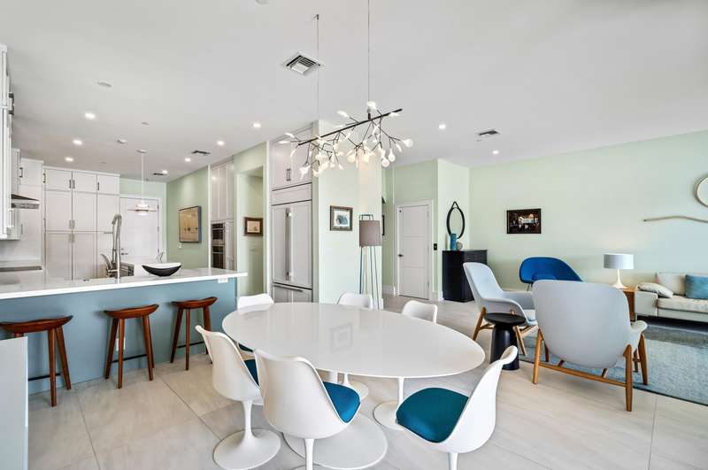 Minutes from Delray Beach's sugar-sand oceanfront and Downtown Atlantic Avenue's shopping and dining venues, The Estuary offers relaxed living in the timeless charm of this award-winning, 24-hour-guard-gated townhome community. In a scenic setting on the Intracoastal Waterway, The Estuary features Mediterranean-inspired architecture, cobblestone walkways, and tranquil lakes. Completely renovated, including new systems and roof in 2021, this chic three-bedroom townhome at The Estuary, with a third-floor family room and bar, captures sweeping intracoastal and serene lake views. An open floorplan great room, with an adjoining chef's kitchen, accesses the water-view loggia and patio. The primary suite and the family room both open to private Intracoastal-view balconies.