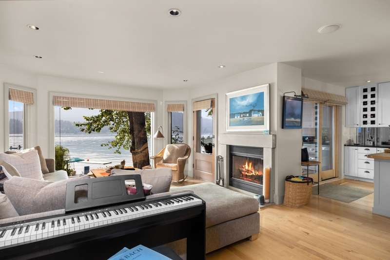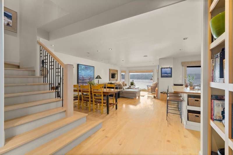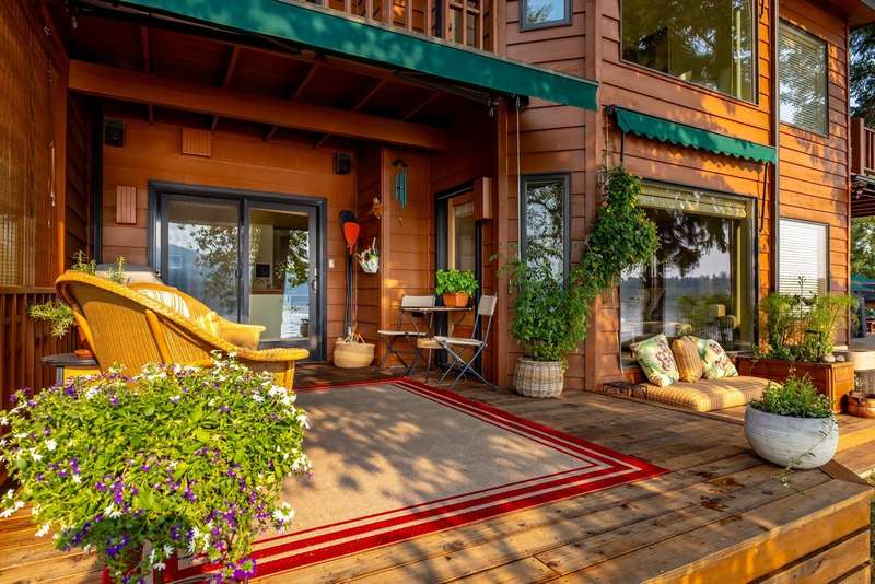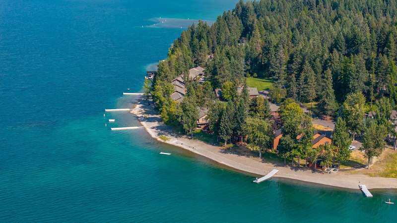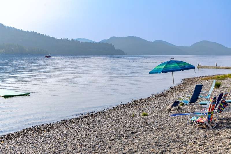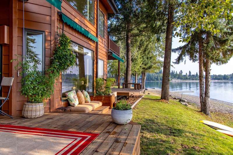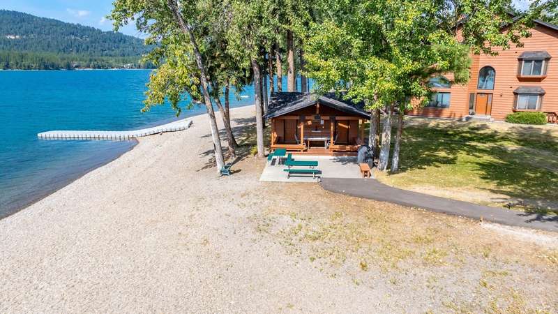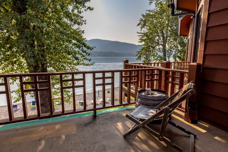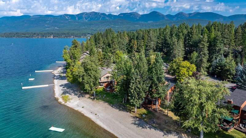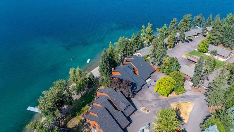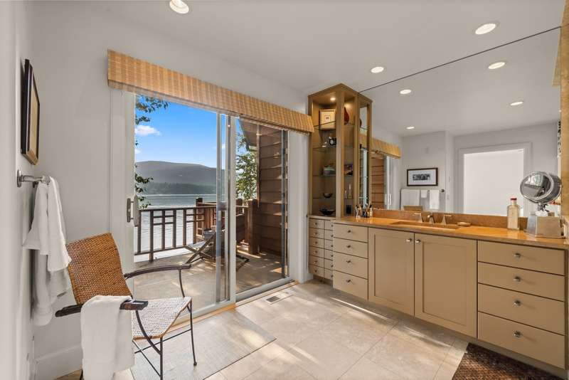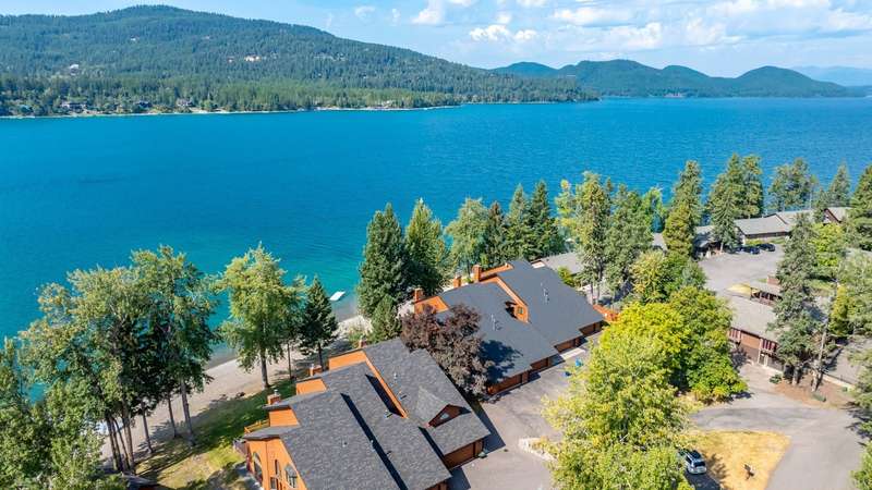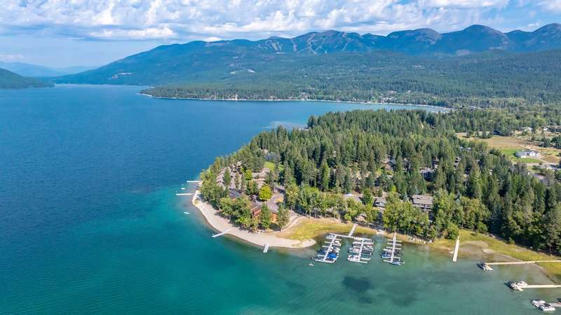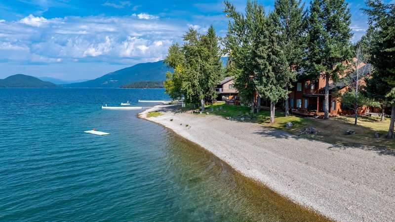 Whitefish LAKEFRONT luxury living with a deeded BOAT SLIP. A rare opportunity to own a high-end, low maintenance, lakefront townhome, only 20 yards from the water, in the highly sought-after Bay Point Country Homes community, with its lakefront amenities, located minutes from downtown and close to the ski hill. No detail has been overlooked in the complete remodel of this impeccable private beachfront lifestyle residence. The craftsmanship and finishes are of the highest quality, showcasing a contemporary and sophisticated design. The home features floor-to-ceiling windows filling the space with natural light and framing lake views. The spacious, spa-like primary suite features a large steam shower, custom walk-in closet, fireplace and deck. The attached 2-car garage provides ample space for recreational gear. Being sold furnished, move-in ready, immediately begin enjoying your expansive private beach, nightly sunsets, and front row living room seats for 4th of July fireworks.