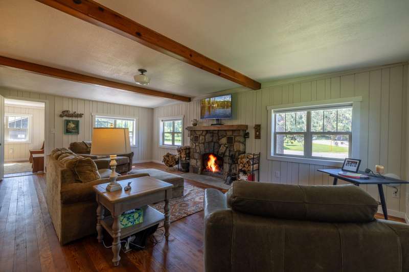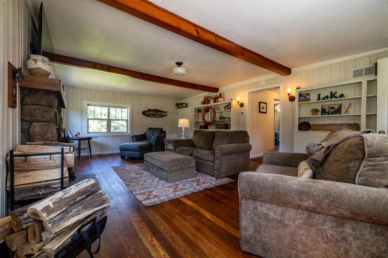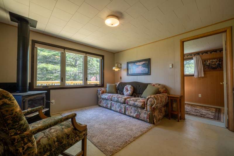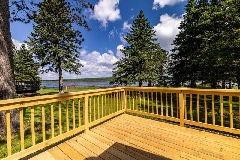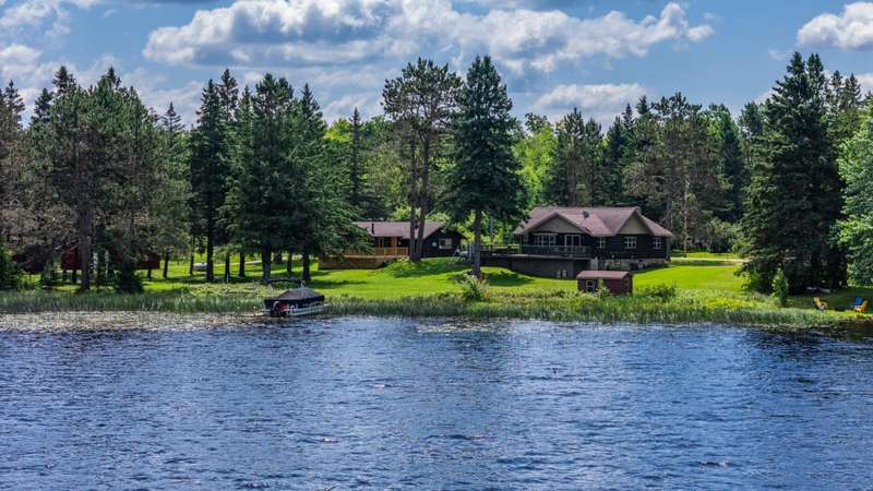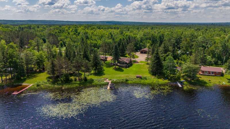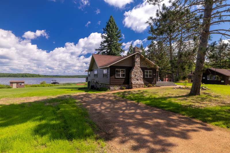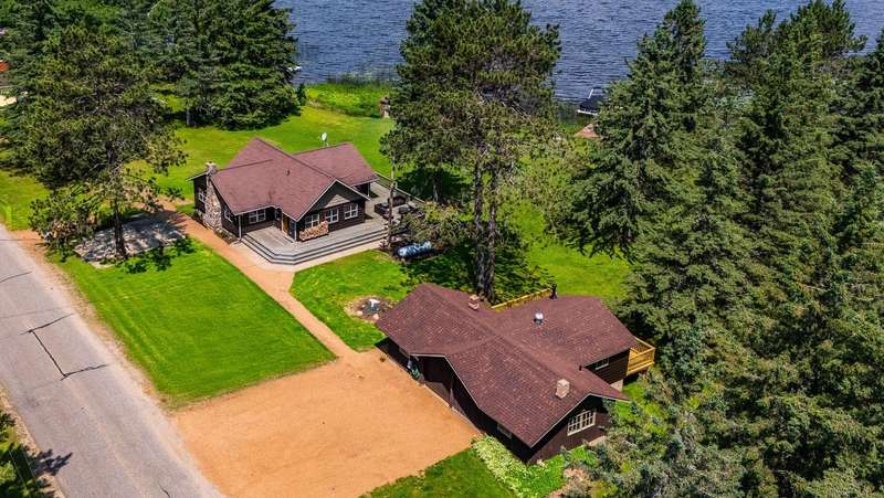 Escape to the Northwoods with this fully renovated, year-round 2-bedroom, 1-bath cabin offering cozy comfort and stunning lake views. Inside, a beautiful stone wood-burning fireplace and wraparound deck provides the perfect spot to relax and take in the scenery of Bishop Lake, a 288-acre full recreation lake. The property sits on a spacious lot with 242 feet of level frontage, offering privacy, and room to enjoy the outdoors. A recently updated three-season guest cabin adds extra flexibility, complete with its own lakeside deck and RV hookups with 50 & 30 amp service plus is ideal for guests, extended stays, or rental income. Just minutes from a public boat landing and close to ATV/snowmobile trails and endless outdoor recreation, this location puts adventure right at your doorstep. Whether you're looking for a peaceful retreat, a place to gather with friends and family, or an income-producing getaway, this Northwoods gem offers space, beauty, and year-round lakefront living.