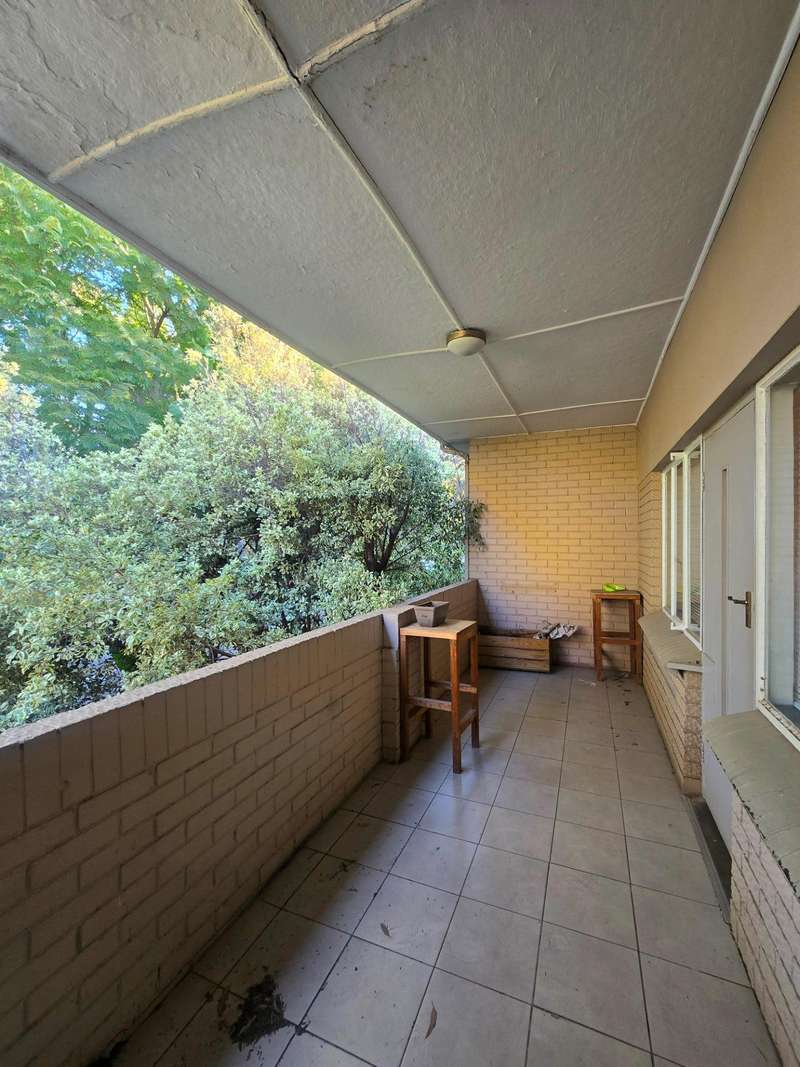 This spacious 3 bedroom, 1 bathroom apartment is set in a well established, well run complex and offers a great balance of space, character, and comfort. The open-plan living and dining area features high-pitched ceilings with exposed beams and warm parquet floors throughout. The kitchen is practical with generous cupboard space and a sit-down counter for easy meals or entertaining. All three bedrooms are a good size with natural light and built-in cupboards. The full bathroom includes both a shower and bath. A large, covered balcony overlooks leafy surrounds, making it ideal for morning coffee or relaxed evenings. Quiet, secure, and full of potential