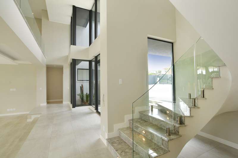 R80 000 per month This impressive home is the perfect opportunity for a family to move in and enjoy the lifestyle which Waterfall has to offer. Set in an elevated position, the patio and living area enjoy views of Waterfall. Sliding doors make the most of the view and bring the outside in. The kitchen, bathrooms and built in cupboards are contemporary in style. A marble staircase with feature chandelier leads you upstairs. The 5 bedrooms are all en-suite and there is a pyjama lounge for the family. All bedrooms have airconditioners. Newly installed curtains in bedrooms will remain. To complete this home are three garages, staff accommodation, gas geysers, swimming pool and a fireplace in the main lounge. This property also includes Back-up power.