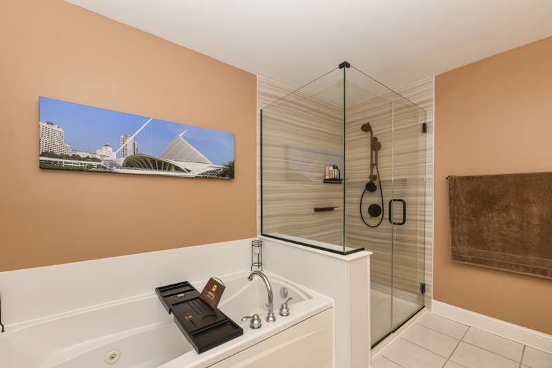 This nicely updated downtown condo will not disappoint! 2 Bedrooms, 2 full baths and 2 underground parking spaces. Situated facing the courtyard, this condo boasts an open layout with a gas fireplace and in-unit laundry. Tons of sunlight, glass doors that open to a patio shielded with planters and shrubs for privacy, with room for your natural gas grill and patio furniture. Updates include All NEW appliances and NEW hot water heater, Master suite on upper level features remodeled bathroom with dual vanity, NEW glass Kohler shower and surround, jacuzzi tub and large walk-in closet. Easy access to everything downtown - Brady St, the Hop and more. Hurry! This one won't last!