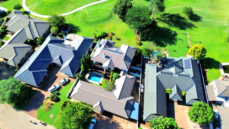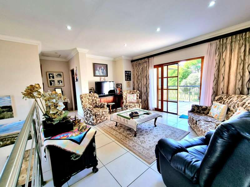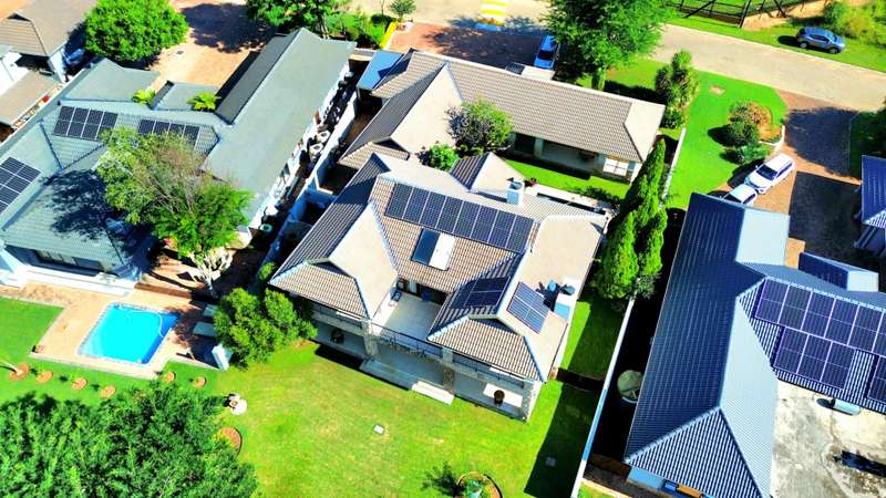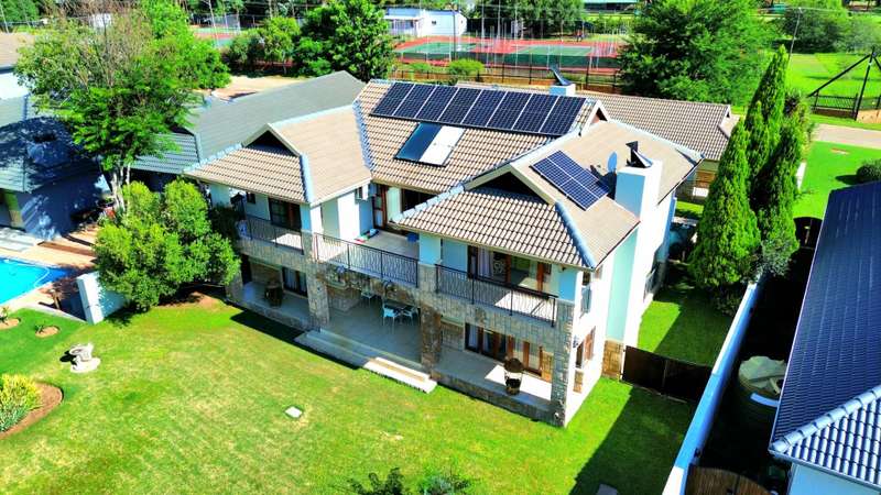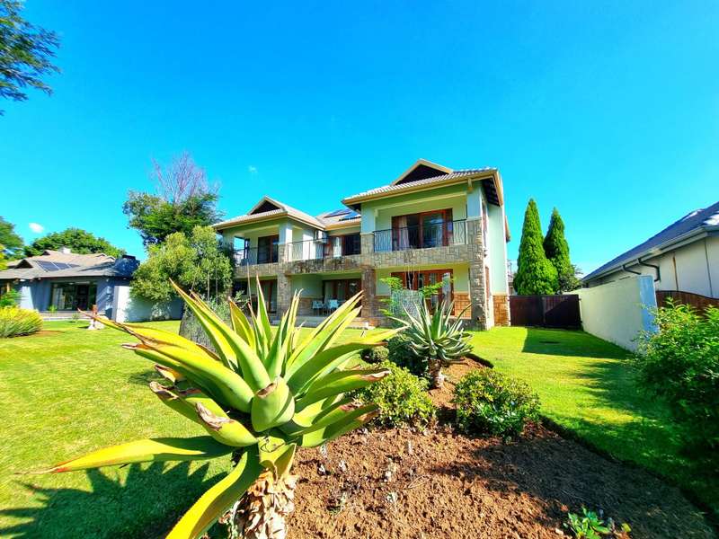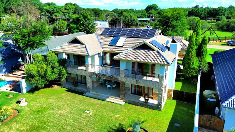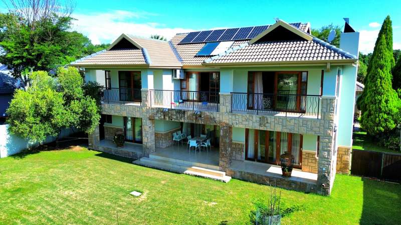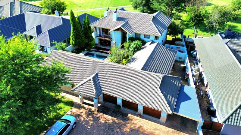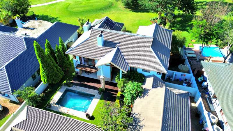 Discover luxury living in Koro Creek Golf Estate with this stunning home perfectly positioned on the golf course, offering breathtaking views. Designed for modern convenience, this home features a solar system with 12 panels and a fully equipped borehole, making it a semi-off-the-grid sanctuary. The property includes three garages and an additional covered carport. As you step inside, you are welcomed by a beautifully landscaped private garden and a sparkling swimming pool, creating a tranquil retreat. To the left of the entrance, a charming granny flat with a full en-suite bathroom opens onto a patio overlooking the pool. On the right, a separate bachelor flat with a bathroom, complete with a shower, toilet, and basin, provides the perfect space for guests, a home office, or additional rental income. Entering the main house, a grand double-volume entrance hall and staircase make an impressive statement. The ground floor boasts a spacious open-plan living and dining area, seamlessly flowing into a well-appointed kitchen fitted with a gas hob and electric oven, a large pantry, and a separate scullery and laundry room leading to a private courtyard. The living area opens completely with stacker doors to a patio with breathtaking golf course views. An enclosed entertainment area, also accessible through stacker doors, features a built-in braai and prep area, blending indoor and outdoor living effortlessly. Upstairs, a second living area with air conditioning leads to a balcony, providing a peaceful space to unwind. The three spacious bedrooms all open onto balconies with stunning estate views. The main bedroom boasts a luxurious full en-suite bathroom, while the remaining two bedrooms share a Jack-and-Jill bathroom with a shower, basin, and toilet. This exceptional home is truly one of a kind and a must-see. Contact me today for more information or to schedule a viewing!