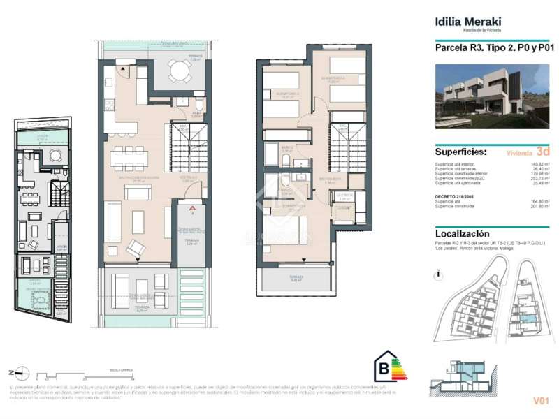 Lucas Fox development the new build Idilia Meraki, in Rincón de la Victoria, just 5 minutes from the sea. It offers this exclusive four-bedroom semi-detached property , ready to be delivered in 2024. It has a private garden and the possibility of installing a jacuzzi, as well as a lower ground floor with space for at least two car spaces. This house has been arranged with the most exquisite finishes and with a level of comfort adapted to the demands of the 21st century. The property has an architectural design designed to contemplate the beautiful views both from the inside and from the exterior. In fact, the property opens in a fan to make the most of the panoramic views of the surroundings, especially towards the sea. Each one has an extensive high-rise garden space that allows you to enjoy the surroundings without sacrificing privacy. The interior layout of the property has been carefully designed to offer large terraces and open-plan living rooms. Open and flexible spaces are offered that allow you to make the most of every corner of the property. This property is distributed over two floors, plus the lower ground floor and the roof floor . On the lower ground floor, there is a garage for two cars and the cleaning and installation room. On the ground floor, the day area is arranged, with the living-dining room with the open-plan kitchen with a central island, in an open-plan space that allows the entry of abundant natural light. From here, access is offered to an open terrace, a covered terrace with a chill-out area and the garden, perfect for relaxing and enjoying the local climate. The floor is completed with a bedroom and a toilet. On the first floor, the night area is offered, with two double bedrooms, a full bathroom and the magnificent main bedroom with its private bathroom and dressing room. Stairs lead us to the roof terrace, which has a terrace, with a covered area, perfect as a chill-out, a solarium area and an exterior dining area . At Idilia Meraki, design and comfort have been thought of, therefore, this property includes a fully equipped kitchen, underfloor heating and other qualities such as a screen and mirror in the bathrooms (for more detailed information, see the quality report). . Furthermore, the development is also committed to sustainability, with a high B energy rating, which in addition to benefiting the environment, implies a reduction in monthly bills. Idilia Meraki, located in Rincón de la Victoria, east of Málaga capital, enjoys access to beautiful beaches, proximity to various amenities and exceptional landscapes. This enclave provides a perfect environment to live in, with the convenience of being just five minutes from the sea and consolidated urban areas. In addition, the strategic location allows quick access to Malaga capital, the AVE station and the airport through the A-7 and N-340a roads. With schools, supermarkets and sports centers nearby, Rincón de la Victoria is presented as a very practical destination, for a relaxed room without giving up the comforts of modern life. For more information, please contact us.