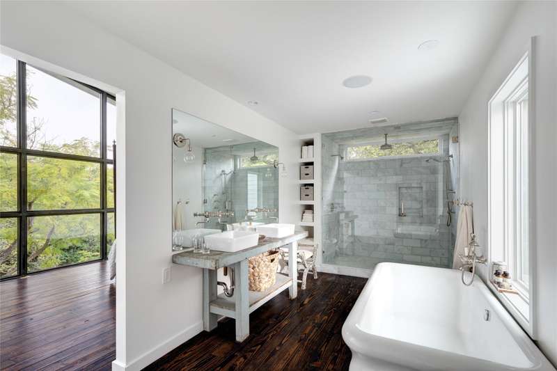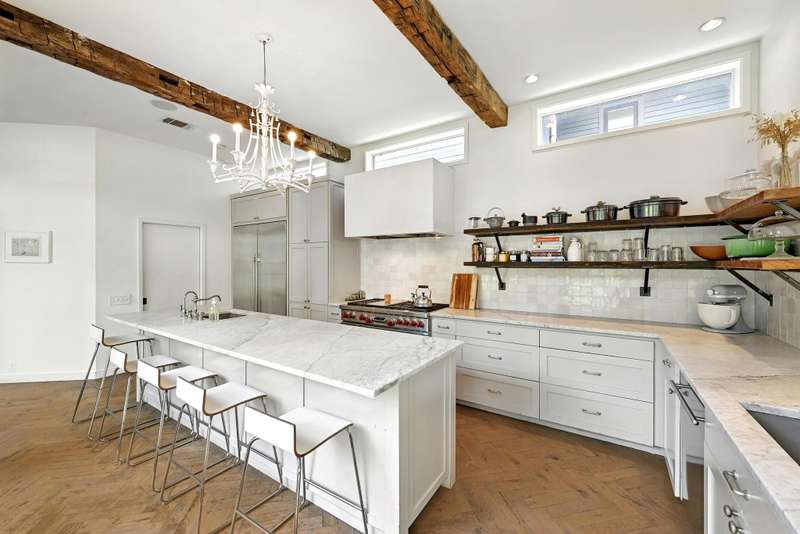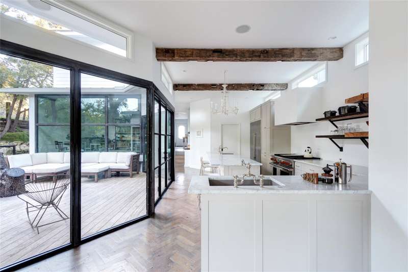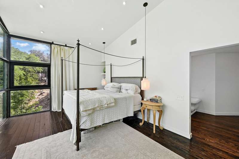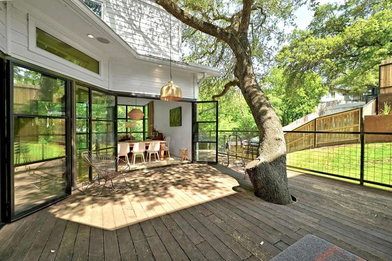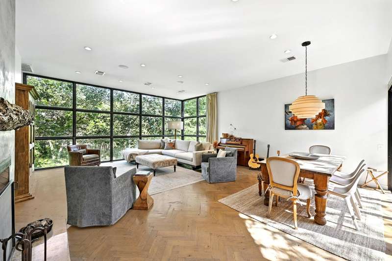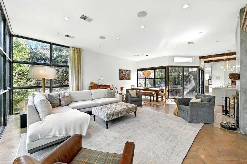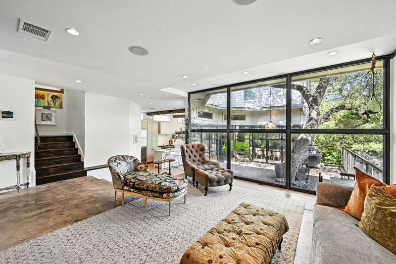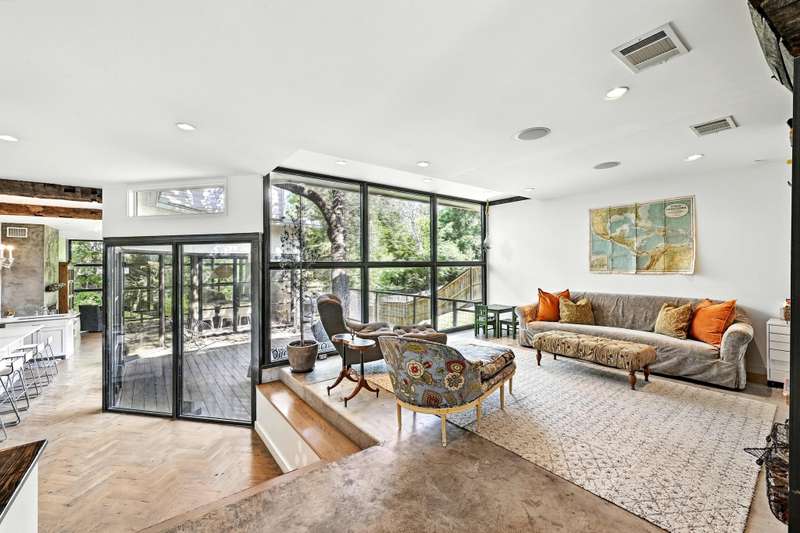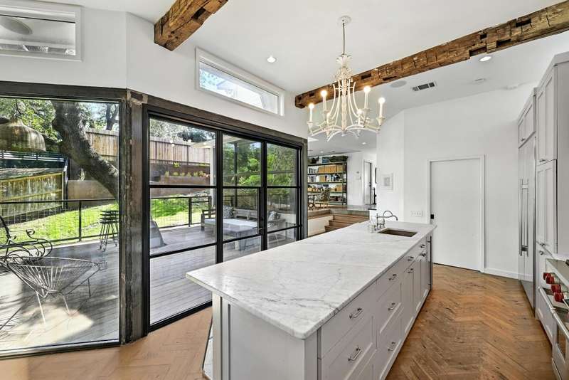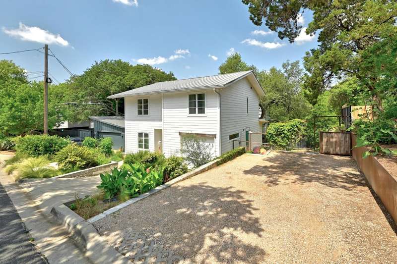 Welcome to 1700 S 6th St., a thoughtfully curated modern farmhouse in one of Austin's most beloved neighborhoods. Designed and built at the leading edge of the white siding movement, this one-of-a-kind residence stands apart with its authentic materials, architectural vision, and deep attention to detail. Featured in Houzz, Crate & Barrel, Loft Home, and Spectacular Women of Architecture, this home is as much a creative expression as it is a functional, family-ready retreat. Soaring steel-framed windows span the back of the home, drawing natural light and a lush treehouse ambiance into the main living areas and primary suite. In the kitchen, reclaimed open shelving crafted from Spaghetti Warehouse beams pays homage to old Austin, while Sub-Zero column refrigeration, a Wolf 48" dual-fuel range, and reverse osmosis drinking water elevate everyday living. Entertain with ease thanks to folding Durango doors that open the kitchen and living room to a shaded outdoor patio anchored by a live oak and surrounded by an edible garden--including Meyer lemon, olive, bay laurel, asparagus, and more--on a fully automated Rachio irrigation system. Inside, you'll find white oak herringbone floors, a Rumford wood-burning fireplace with a Colorado River-recovered cypress mantle, and layered design elements throughout. The primary bath features a vintage European workbench-turned-vanity, a soaking tub, and a spa-style shower with three showerheads. The lower-level music studio includes a murphy bed for added flexibility, while a whole-home sound system, ADT security, and wired high-speed internet make the home smart and secure. Plans for a pool convey, along with a custom-built media cabinet and split HVAC systems in the garage and studio. This is more than a home--it's a showcase of soul, sustainability, and sophisticated Austin living. Tax and assessed values are estimates for illustration purposes only. All figures should be independently verified.