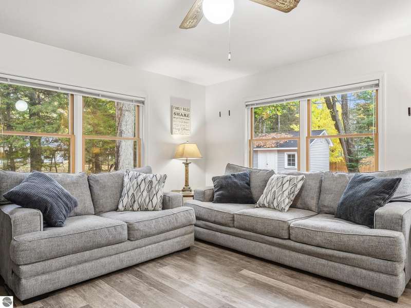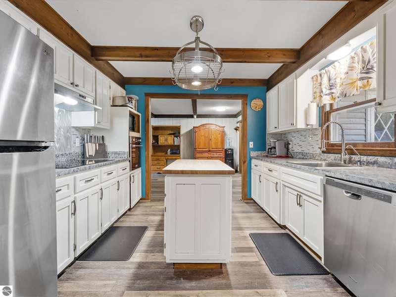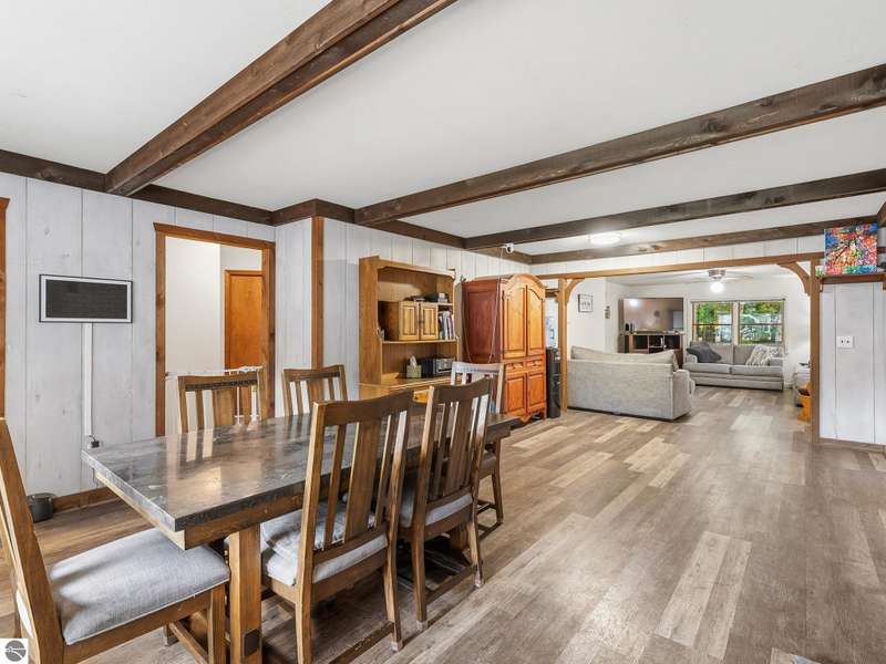 In the City of East Tawas, this inviting ranch sits on nearly a half acre--two lots for added space--just minutes from Tawas Lake, beaches, shops, and dining. The spacious great room off the kitchen is the heart of the home, with an open layout for living and dining beneath beamed ceilings and a cozy brick fireplace as the centerpiece. Enjoy peace of mind with many updates: energy-rated appliances, refreshed kitchen, new natural gas forced-air heating system, new garage door, flooring (2019), bathroom renovations, roof (2020), electrical panel (2024), and water heater (2025). The home features 3 bedrooms and 2 bathrooms, including a primary suite with private bath, walk-in closet, and two additional generous bedrooms sharing a full bath with double sinks. The laundry area is conveniently located just off the attached 2-car garage. Surrounded by beautiful hardwoods, the secluded yard offers a park-like setting for relaxation, play, or entertaining. With single-level living, modern updates, and a prime location--this East Tawas gem is move-in ready and waiting for you!