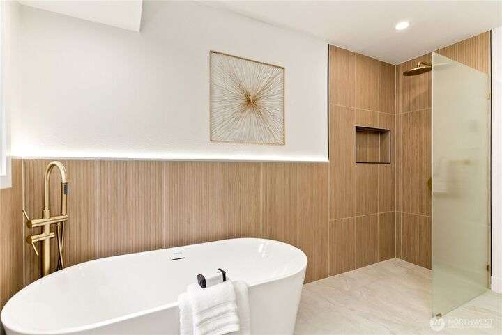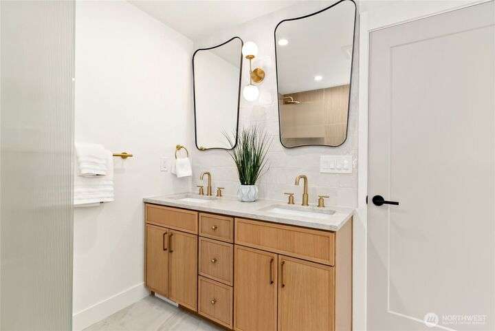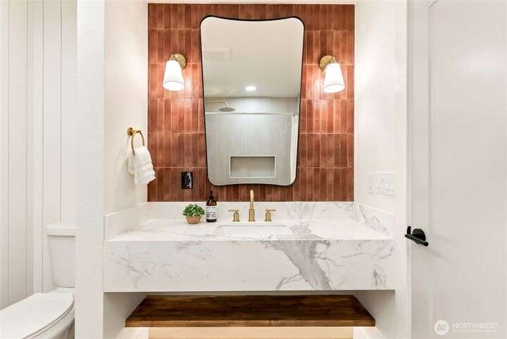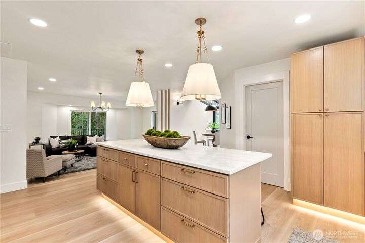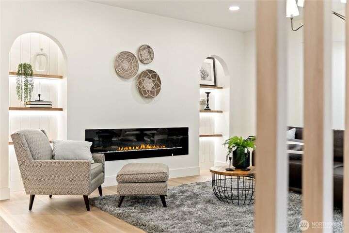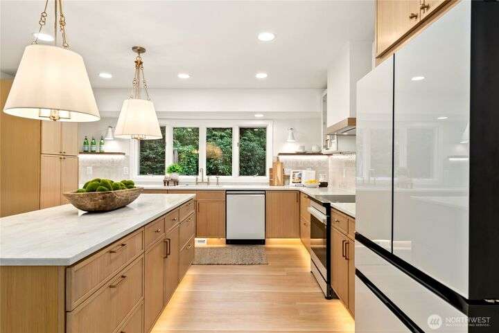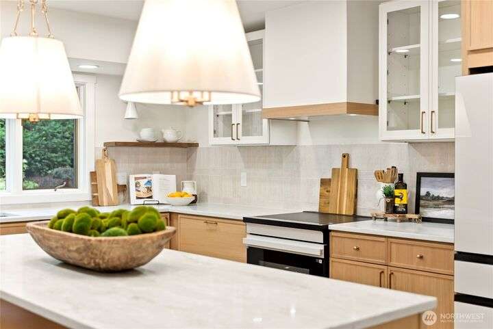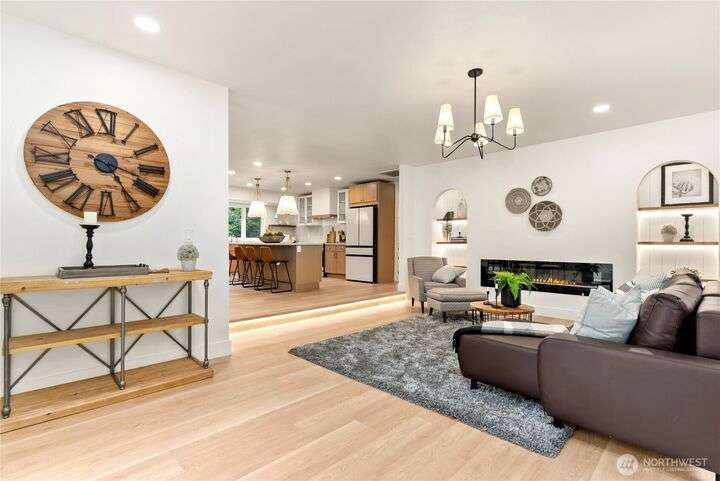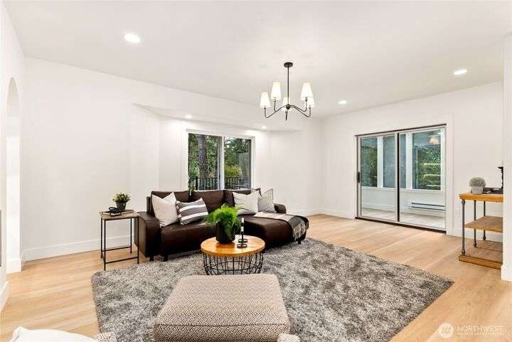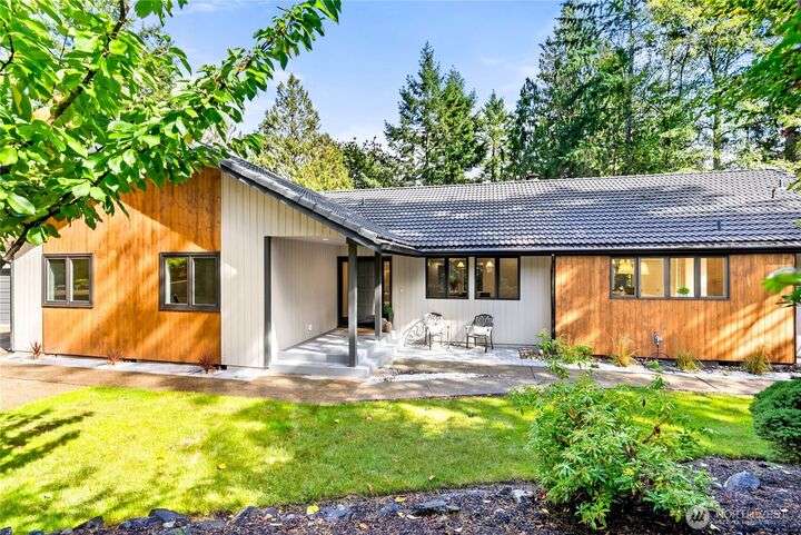 Modern luxury meets timeless design! Single Story with half acre w/private setting & unbelievable finishes; 2812sf, 4bed, 2.25bath w/ bonus living room or flex room. Updates throughout: New counters, cabinets, backsplash, flooring, paint, tile work, custom lighting, high-end fixtures & more! The kitchen boasts a LARGE island & new appliances. Sunroom breakfast nook & lovely solarium for indoor garden plumbed w/sink. Walk-in pantry w/spacious laundry. Wood burning fireplace & electric. Sleek modern spa styled bathrooms. Primary offers his/hers reading lights, walk-in shower & closet, custom tile & plenty of natural light. Deck access leads to private backyard. Tile roof, newer AC & water heater. Near downtown Gig Harbor, shopping, Costco.