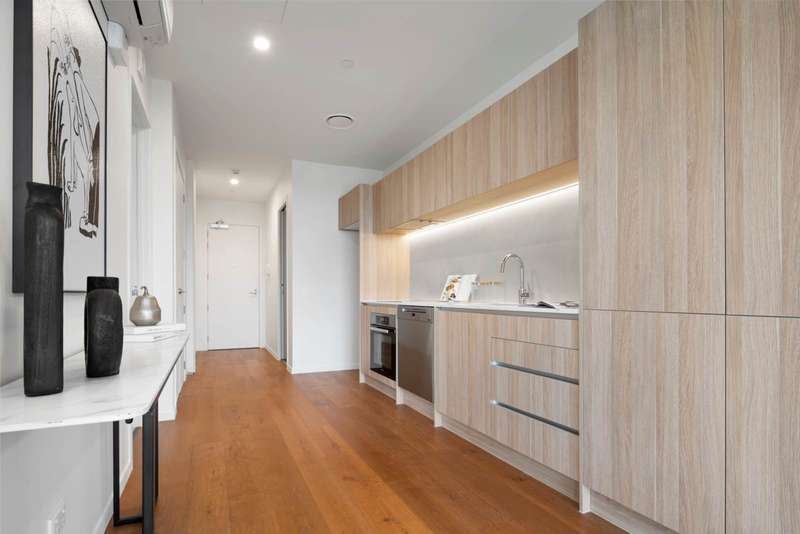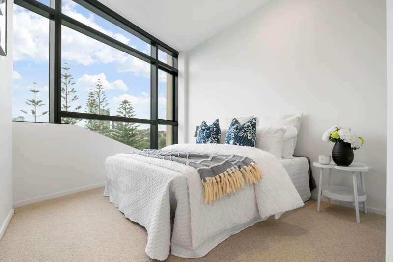 This beautifully designed two-bedroom, one-bathroom apartment offers modern living with a secure garaged carpark. The interiors are elegantly finished with natural timber flooring, meticulously detailed features, and stylish kitchens and bathrooms, creating a refined and inviting atmosphere. Located within an exceptional development designed by award-winning architects Jasmax and developed by KBS Capital, this apartment is part of a thoughtfully planned community that blends city-edge living with beachside leisure. The development features 120 premium freehold apartments overlooking a vibrant central plaza, surrounded by lush green spaces that foster a strong connection to nature and the waterfront. At courtyard level, residents will enjoy a curated selection of retail spaces, a fitness center, and dining options. Shared spaces and amenities have been designed to cultivate a sense of community, while the expansive green reserve and seafront boardwalk, lined with native trees, provide seamless connections to the city and surrounding suburbs. Location is key, and Amaia offers unparalleled convenience. Within walking or cycling distance of Takapuna Town Centre, residents have easy access to top-tier retail, dining, and entertainment options. Devonport and the stunning East Coast beaches are just a short journey away, while commuters can reach Akoranga Bus Station on foot or access the motorway within minutes for a swift trip to the CBD.