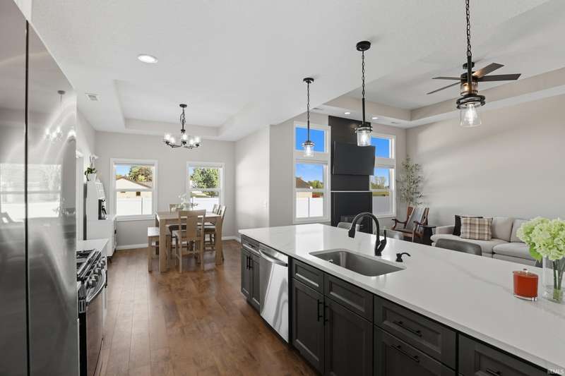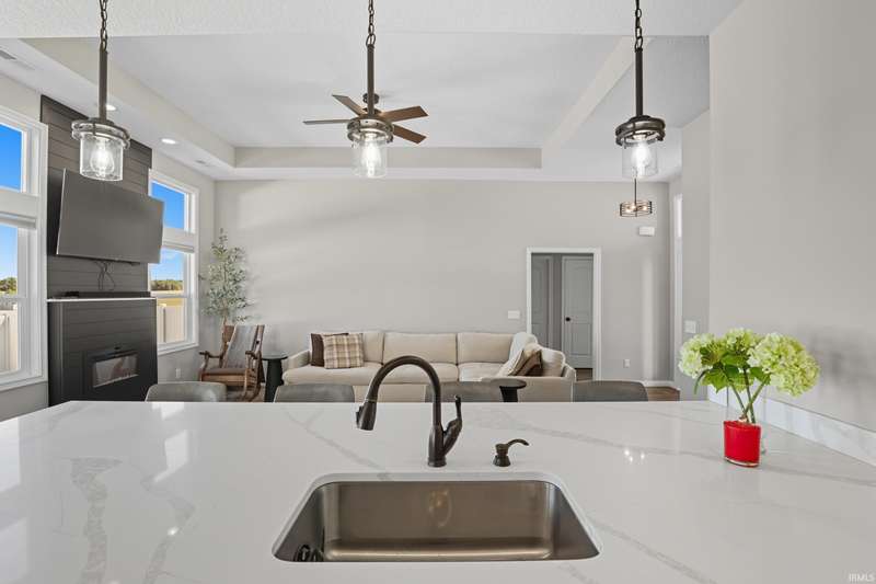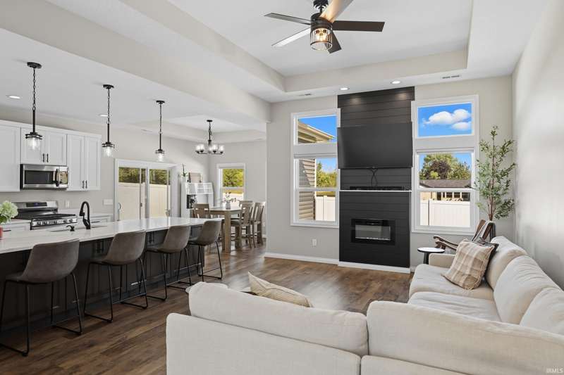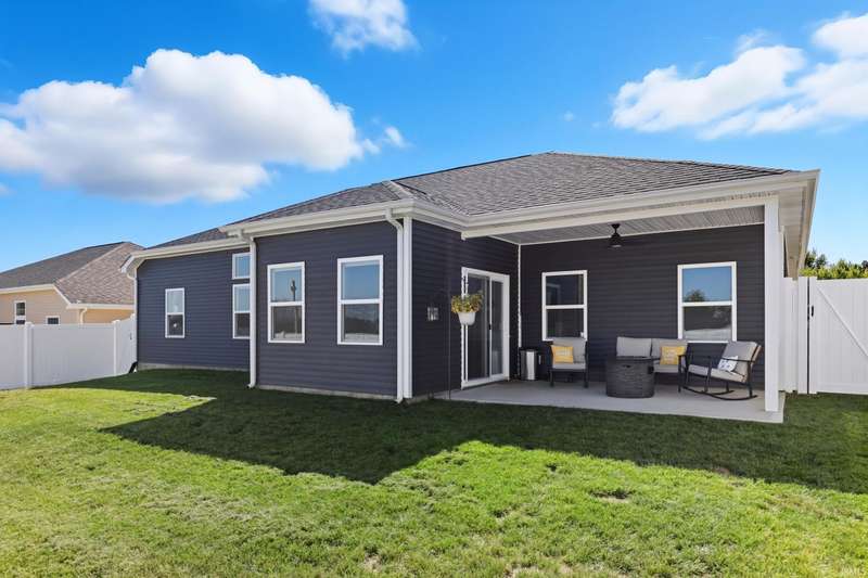 Why wait months to build when you can move right into this stunning 2-year-old home in Carroll Schools! With nearly 1,600 sq ft, 3 bedrooms, and 2 bathrooms, it offers an open-concept layout designed for modern living. Inside, you’ll be greeted by soaring 10’ ceilings, a dramatic floor-to-ceiling fireplace, quartz countertops throughout, and stylish tile finishes in both bathrooms. The primary suite is a true retreat with a twin-sink vanity, tiled walk-in shower, and spacious walk-in closet. The kitchen features a walk-in pantry and flows seamlessly into the living and dining areas, making it perfect for entertaining. All the extras are already done for you. Appliances, window treatments, full landscaping, and a privacy fence are included, saving you thousands compared to a new build. Step outside to enjoy a covered patio with a ceiling fan making it the ideal spot for relaxing or gathering with friends. Located just minutes from shopping, dining, grocery stores, and everyday conveniences, this home truly has it all. Move-in ready has never looked better.