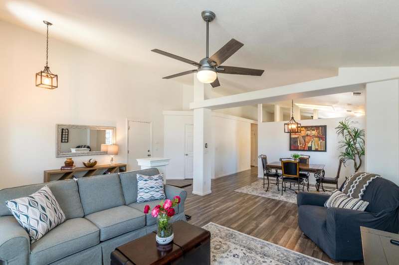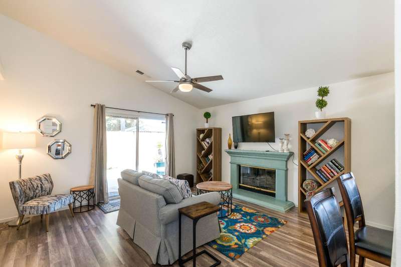 Great location! Situated on a desirable corner lot in a quiet, sought-after Clovis neighborhood. This 3-bedroom, 2-bath home offers a spacious kitchen with ample counter space, two living areas, vaulted ceilings, and abundant natural light. The large master suite features a jetted tub and huge walk-in closet. Additional features include indoor laundry, newer appliances, and owned solar. Quaint backyard with a covered patio makes it great for entertaining. With a strong rental history as a successful furnished rental, it's ideal for investors or homeowners alike. Close to shopping, dining, and Clovis Community Hospital.