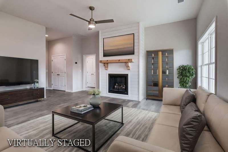 NEW Construction! NEW Subdivision west of Republic High School! Full irrigation, sod front, straw mat back. 3 car gar, 3 BR approx 1608 SF living area with open living room/kitchen. LVT flooring throughout the entire house!! Gas range, pantry in the kitchen, shiplap fireplace, with mantle. Beautifully painted wht cabinets, Quartz Sienna Gold countertops through out, blk hardware and lighting fixtures. Interior walls are Aesthetic White. All faucets are chrome with no option to change. Interior pictures are not of the exact home, but similar finishes. Buyer do due diligence on schools.