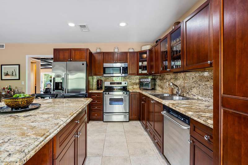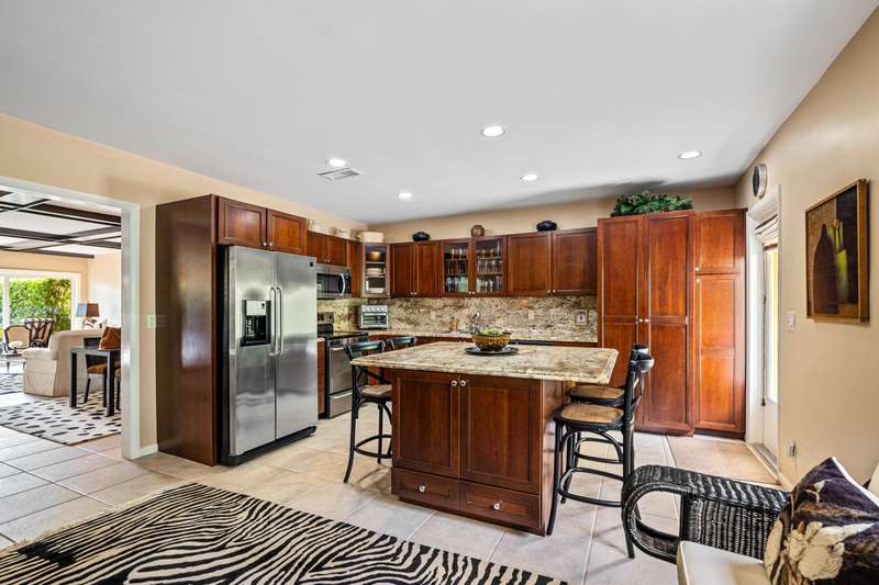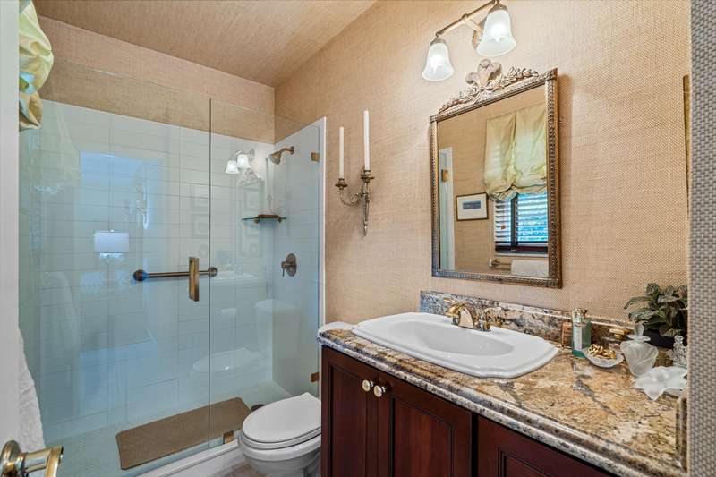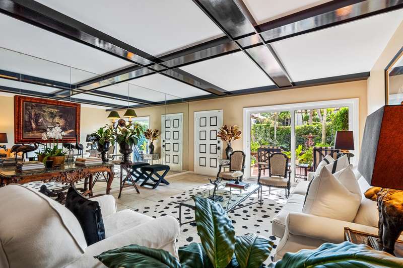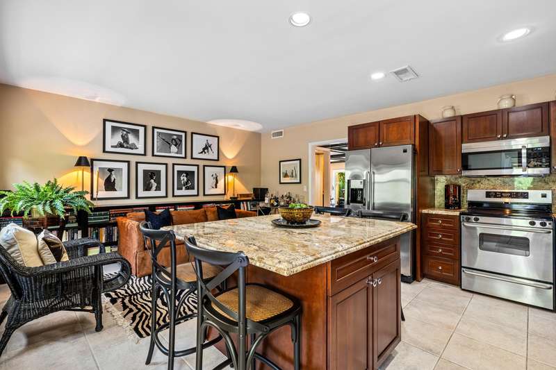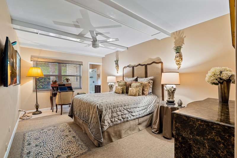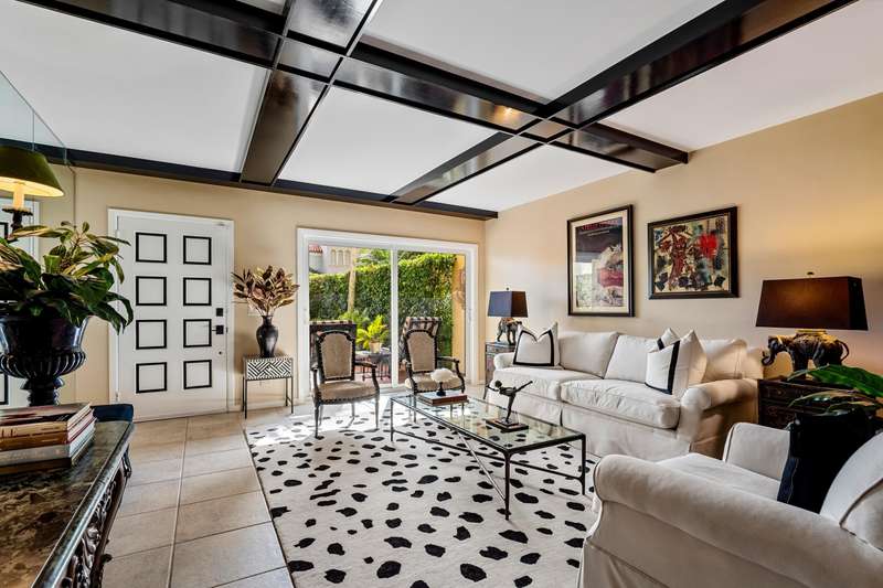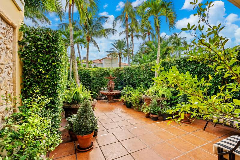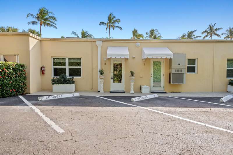 SEASONAL LEASE AVAILABLE 11/1/25-4/30/26 Enter this beautifully furnished villa through your private courtyard garden entrance with a charming fountain creating a very European vibe. This immaculate and very stylish home has been done with the utmost taste creating the perfect retreat. The well-designed floor plan offers a spacious bedroom with walk-in closet and an en suite bath with new walk-in shower, den with fold out sofa, TV and full bathroom to accommodate 2 guests, great room with dining area, eat-in kitchen with direct access to the assigned parking space and guest parking. Amenities include private beach access, laundry in the apartment. Perfectly located just one block to the beach and Lake Trail, close to Publix, shopping and dining. One small dog allowed.