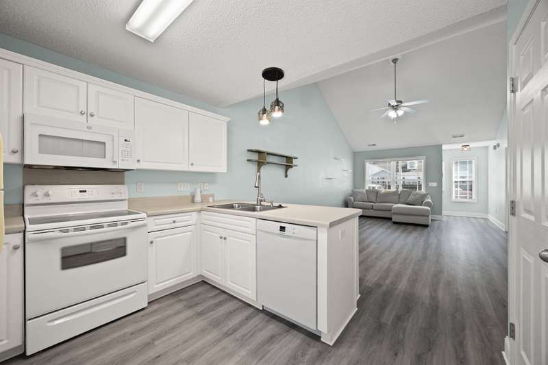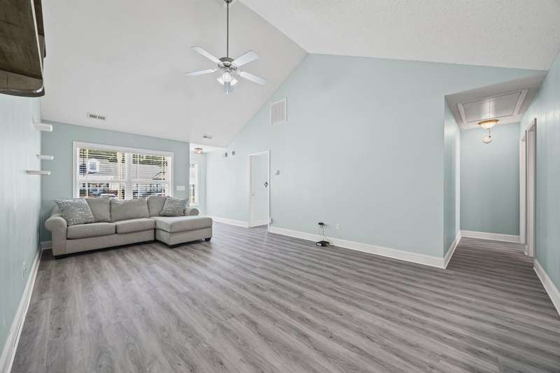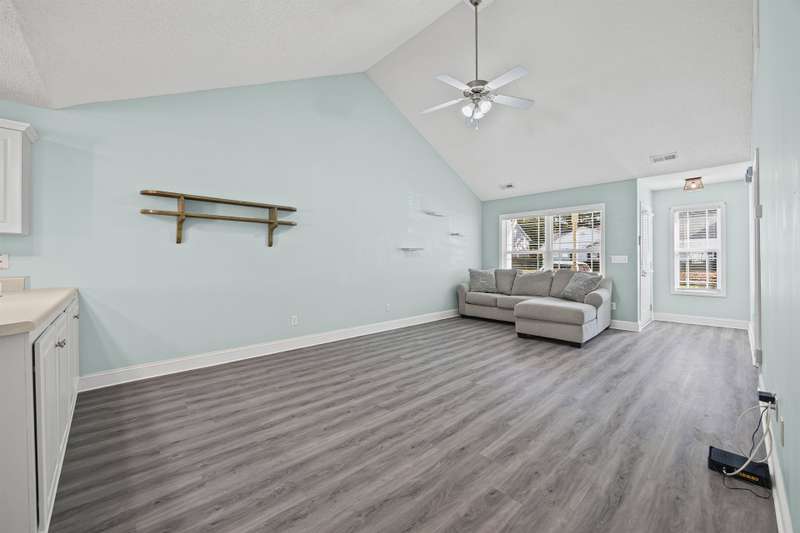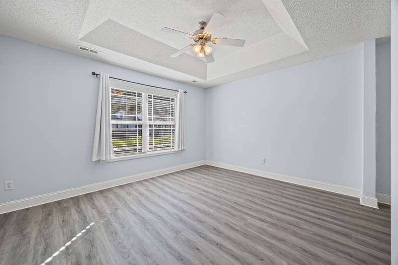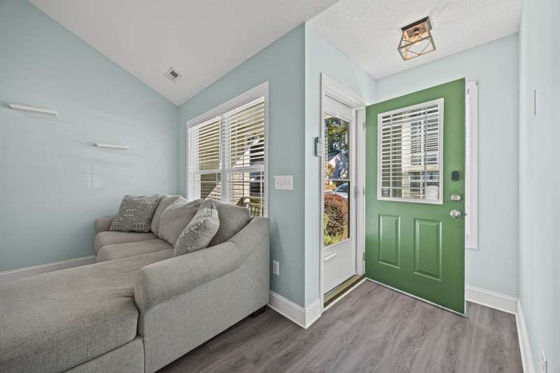 Escape the ordinary and step into effortless living! This charming 2-bedroom, 2-bath townhome offers the perfect blend of privacy and convenience. Imagine enjoying your morning coffee on the welcoming front porch or hosting a casual evening gathering on the private patio in your fenced-in backyard. Inside, the open floorplan with soaring vaulted ceilings in the living room creates an airy, spacious feel. The split-bedroom layout is ideal for guests or a home office, and both bedrooms boast walk-in closets for exceptional storage. The primary suite is a true retreat, featuring a lovely sitting area, an elegant tray ceiling, and a spa-like bath with dual sinks. Best of all, you get a prime location that avoids City Taxes while keeping you just minutes from all modern conveniences. This is low-maintenance living at its finest!