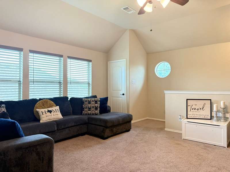 Welcome to this beautifully maintained 2018 home in the sought-after Settlers Glen community. From the moment you arrive, youll notice the upgraded landscaping that not only enhances curb appeal but also shows the care that has gone into every detail of the property.Step inside and youll find an open, inviting layout with modern finishes and a design that just makes sense. The kitchen offers plenty of counter space and cabinets, making it a great spot for both everyday meals and entertaining friends. A built-in mud bench and a convenient office nook add extra functionality that fits right into your daily routine.Upstairs, theres a spacious game room that can easily transform into a media room, play area, or even a second home office. Out back, the fully fenced yard comes with a covered patio and exterior lighting, perfect for relaxing evenings or weekend get-togethers.Living in Settlers Glen means being part of a welcoming community with walking trails, parks, a splash pad, and a pool. Youre also close to schools, shopping, and major highways, so everything you need is right within reach.Schedule your private showing today and see why this home is the perfect fit for you.
