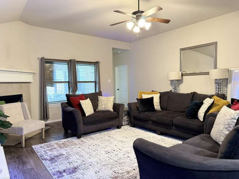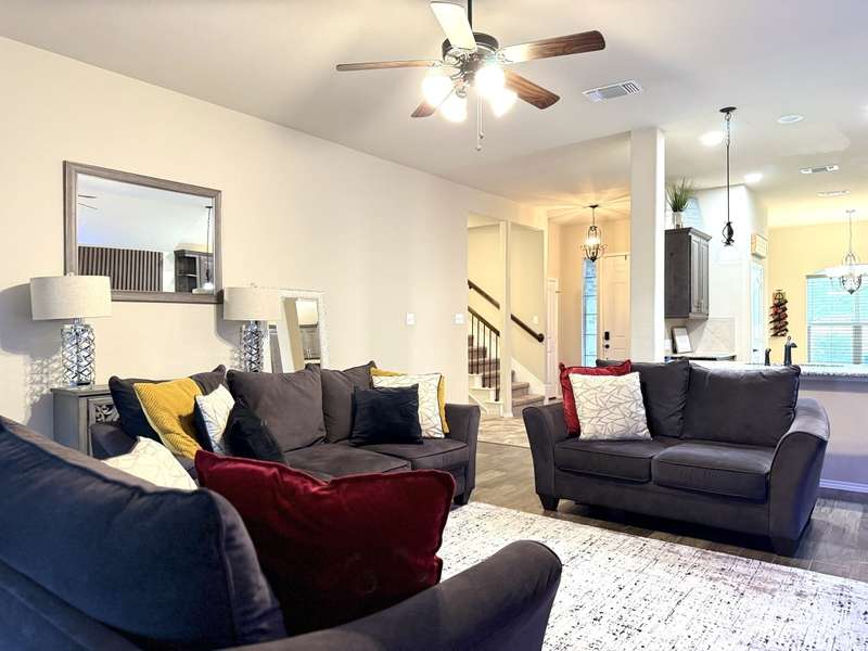 Beautifully maintained 2018 Home in Sought-After Settlers Glen community. This property features upgraded landscaping that enhances the curb appeal and sets the tone for the care and attention throughout the home.Inside, you'll find an open and functional layout with modern finishes and a thoughtful design. The kitchen includes open countertops and plenty of cabinet space, making it ideal for everyday living and entertaining. A built-in mud bench and dedicated office nook add both convenience and versatility.The upstairs game room provides flexible space for a media area, playroom, or home office. Outside, enjoy a fully fenced backyard with a covered patio and exterior lighting, perfect for relaxing or hosting guests.Settlers Glen offers a strong sense of community with access to walking trails, parks, a splash pad, and a community pool. Located close to schools, shopping, and major highways, this home combines comfort, style, and convenience.Schedule your private showing today and see everything this wonderful home has to offer.