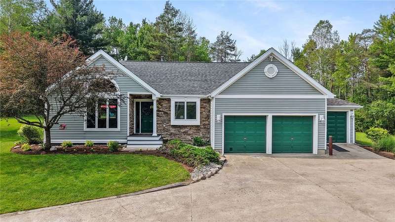 Welcome to this beautifully renovated Greek Revival, blending timeless architecture and history with modern luxury. Nestled on nearly 3 partially wooded acres with a private pond and breathtaking views, this home offers the perfect mix of serenity and convenience. Step inside to discover over 2,000+ sq ft of thoughtfully designed living space, featuring wide plank wooden floors throughout, cathedral ceilings, and large windows that flood the home with natural light. The spacious main-floor primary suite is a true retreat, complete with a massive bathroom and soaking tub. Flexible floorplan includes 3 bedrooms, 2.5 baths, and a potential library, playroom, office, or tailored space. Entertain in the gourmet-ready kitchen or relax in the family room with gorgeous views and stove. Extensive updates including mini-splits, new furnace, and modern septic system?mean you can move in with peace of mind and appreciation. Exposed plumbing upstairs offers the opportunity to potentially add a bathroom, kitchen, or laundry room or simply consider additional space for rooms to suit your needs. Large attached storage area, workshop, or hobby space (not included in the square footage) provides incredible versatility?for craftsman, artists, or storage in addition to the chicken coop and shed. Unique enclosed outdoor entertainment space is a perfect place to unwind! A property like no other and a straight and fast commute to downtown Ithaca!