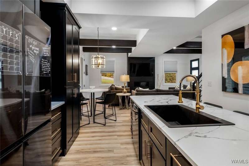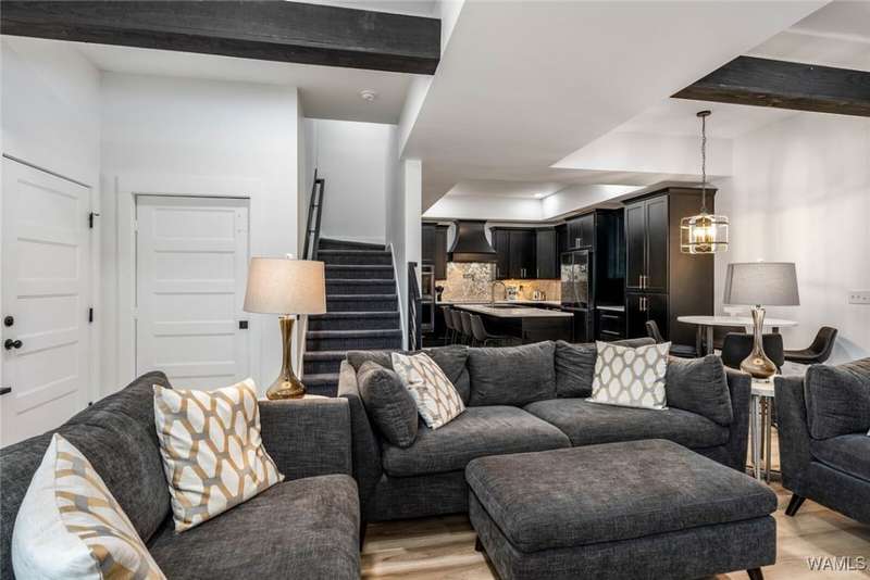 Experience elevated living in this stunning 3-story, 3,700 sq ft home nestled within the exclusive Maison du Lac gated section of NRYC. Step inside to discover dark, moody custom cabinetry that sets a rich and sophisticated tone throughout the home. The hidden kitchen pantry offers a seamless, clutter-free aesthetic while providing ample storage for the culinary enthusiast and a storm room for peace of mind. Newly installed elevator gives you easy access to all 3 levels. The primary bathroom feels like a spa retreat, featuring sleek finishes, huge walk-in shower and giant closet. A large bonus/5th bedroom with mini fridge and sink offers the ideal space for entertaining, with balcony overlooking Lake Tuscaloosa. The community TRAM is just down the street giving you access to the neighborhood DOCK. This remarkable home combines design, luxury, and practicality?welcome home!
