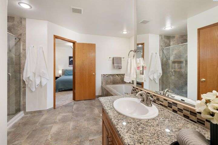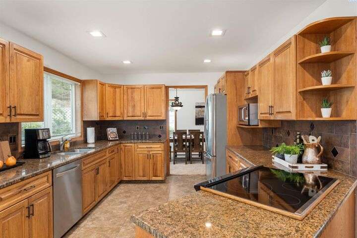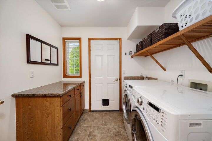 MLS# 286463 Welcome to this beautifully updated 2,547 sq. ft. home in desirable South Richland. Step inside to an impressive open staircase, inviting living room, and formal dining area. The spacious kitchen opens to a cozy family room with a fireplace, and provides seamless access to your private backyard retreat - complete with covered patio, tiered gardens, and multiple flexible outdoor living spaces. Fresh interior paint throughout gives the home a crisp, modern feel. Upstairs, you'll find three bedrooms, including a luxurious primary suite that features a full tile walk-in shower, oversized walk-in closet, and your own private deck with river views - recently renovated with 50-year composite decking. Additional highlights include a Nanotech treated roof with 4-year transferable warranty, a large two-car garage, and a dedicated off-street parking space at street level. This home is a rare blend of comfort, elegance, and outdoor living - don't miss it!