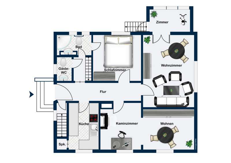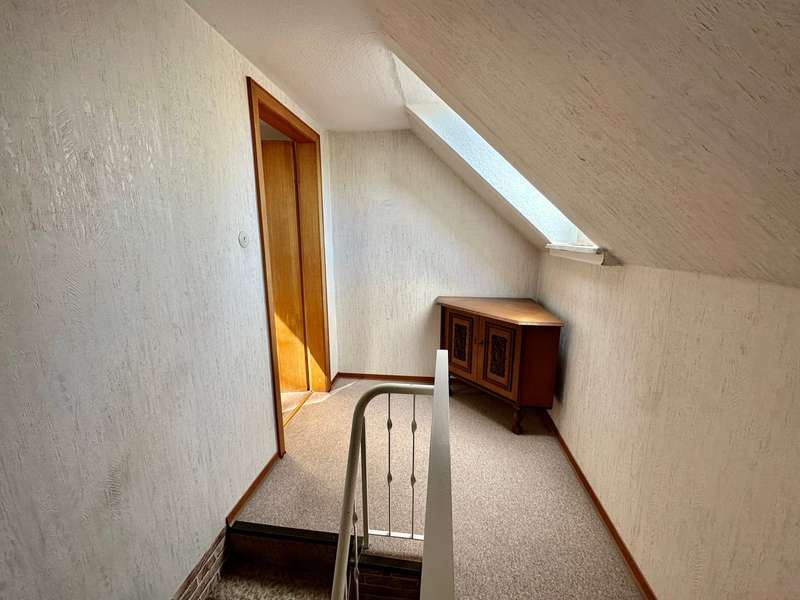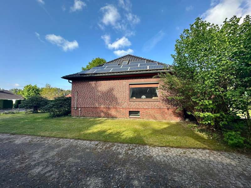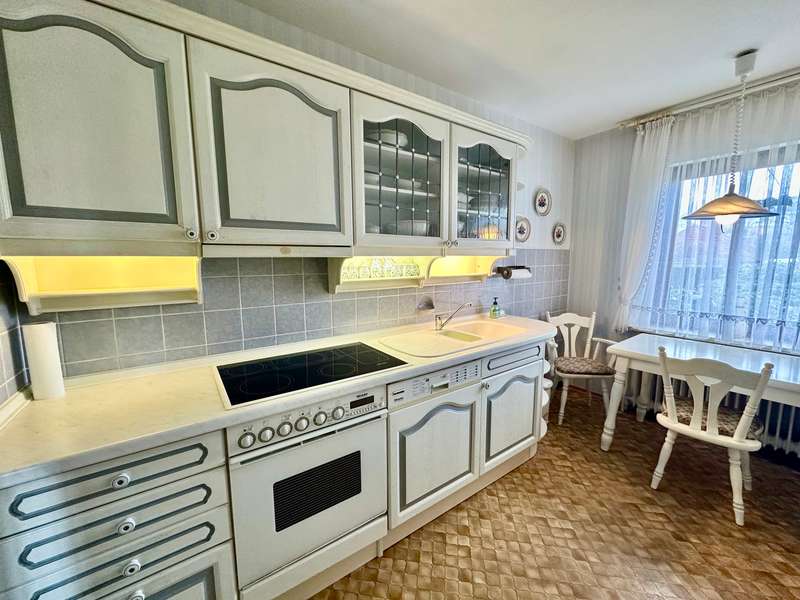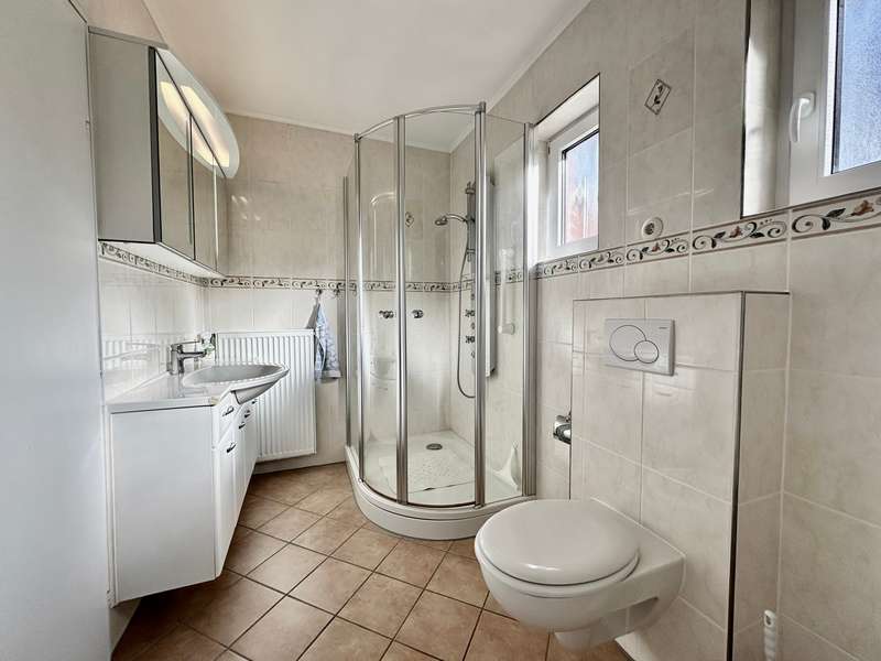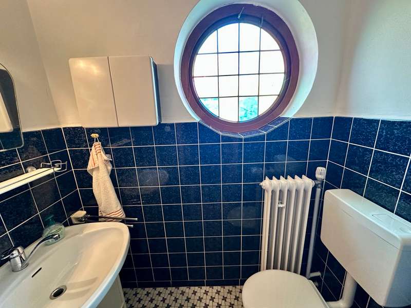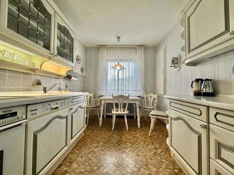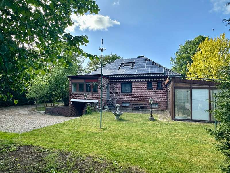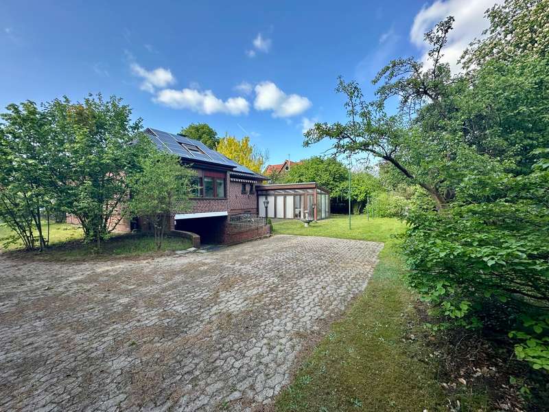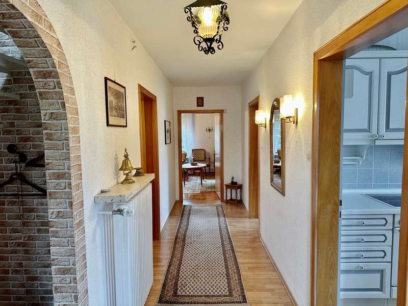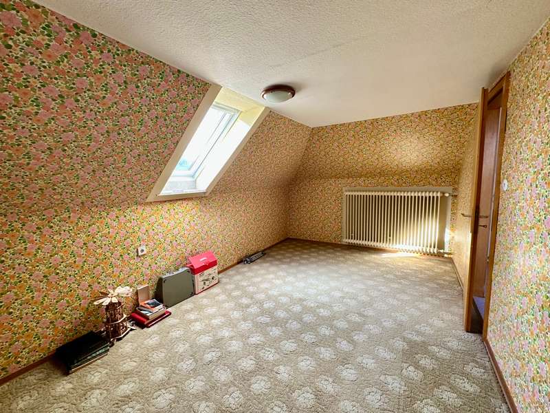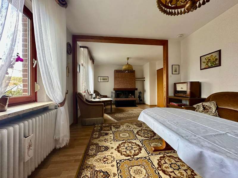 This detached house offers plenty of space for individual design options on a plot of approx. 2,500 m². The quiet location, the large garden and the well thought-out furnishings make the property an ideal home for a family or people who like to live generously. The house has partial oak parquet flooring, a fitted kitchen and a conservatory with a view of the garden. A sheltered south-facing terrace with electric awning invites you to linger. The underground garage and a paved driveway with a wrought-iron fence complete the outdoor facilities. A special highlight is the solar system with 40 modules (built in 2010). The electricity generated is fully fed into the grid and thus offers a monthly income of approx. 180 euros (depending on solar radiation). The cellar offers plenty of storage space and potential uses. All living rooms are equipped with shutters (except bathroom and guest WC). The spacious plot still offers design potential. This property combines plenty of space with good facilities and is waiting to be used according to your ideas. Feel free to arrange a viewing appointment!
