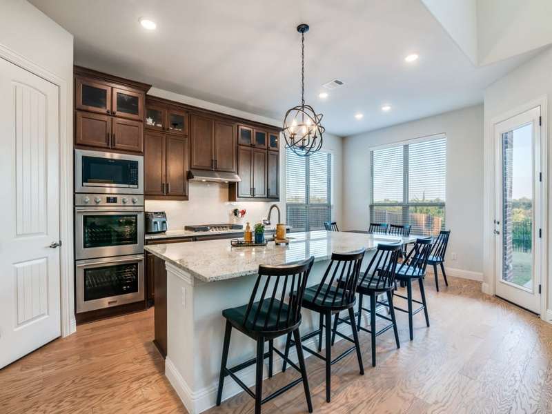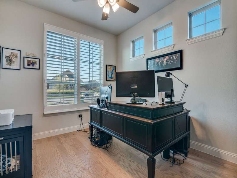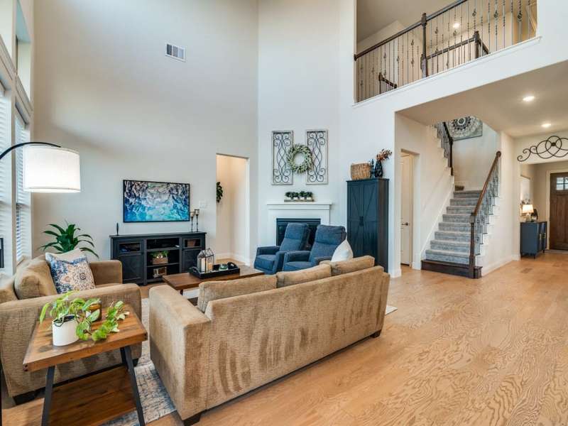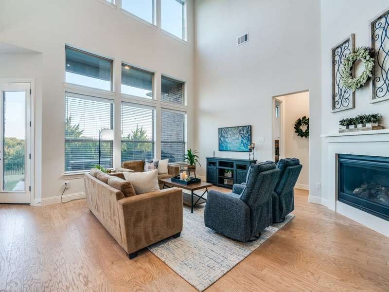 Welcome HOME to 721 Huffines, a stunning home in one of Wylie's premier communities! From the moment you enter, you will sense the quality of construction and pride of ownership! Light hardwood flooring leads you from the front door past the office...with French doors...to the dining room with custom cabinetry right into the open kitchen and family room brimming with light! The island kitchen features a deep single sink, gas cooktop, double ovens and a walk in pantry! The private primary suite...with sitting area... has a spa like bath with separate vanities, HUGE walk in closet and a door from the closet to the laundry room! Upstairs you will find another living area, 3 bedrooms and 2 full baths, one ensuite to a bedroom! 3 CAR GARAGE! View of Lake Lavon from the upstairs window! Private backyard facing an Army Corp of Engineers property with NO neighbors behind! Highly-rated Wylie ISD with George Bush ES located right in the neighborhood! Inspiration is a resort style community featuring community clubhouse, pools, fitness center, playgrounds, dog park, disc golf course, pickleball courts and extensive walking and jogging trails!
