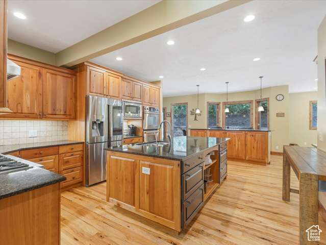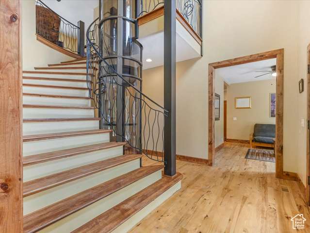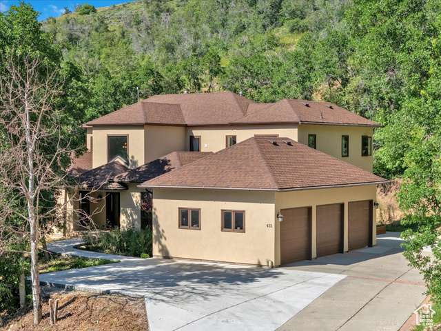 Nestled near the top of the gated community of Emigration Place, this spacious home invites you to enjoy the splendor of mountain living just minutes outside of Salt Lake City. With 5306 square feet, 5 bedrooms, 5 bathrooms, an office, multiple family rooms, and an elevator to provide ease of access to all three levels, there's room for every aspect of your lifestyle. The two-level entry invites you in with a sweeping stairway repurposed from a Salt Lake church and custom metal handrails which wrap around the glass and metal elevator. An oversized kitchen with two islands, a covered deck and formal and informal dining areas make entertaining a breeze. Upstairs another deck allows you to enjoy the beautiful sanctuary of Emigration Canyon just steps from your primary suite with fully renovated lux bathroom. A junior suite completes the upper level. The basement features three more bedrooms, two full bathrooms, a theater room and additional family or game room. The 3-car garage with built in workbench is supplemented by additional parking for 3 more cars and the perfect spot for your camper or boat as you prepare to enjoy the outdoor recreation opportunities that surround you along the Wasatch front and back!