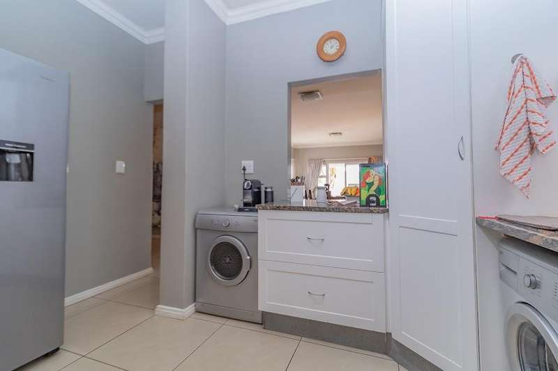 This stunning apartment, located in the prestigious Thorn Valley Estate at Portland Place, offers a perfect blend of modern living and tranquility. The expansive living area is designed to let in natural light, opening up to a sunny balcony equipped with a built-in braai, ideal for relaxing or entertaining guests. The apartment boasts a sleek and modern kitchen, thoughtfully laid out with ample storage and counter space. There are two generously sized bedrooms, both designed with comfort in mind. The main bedroom features an en suite bathroom and its own private balcony, providing a serene retreat. Two well-appointed bathrooms, plus an additional guest cloakroom, ensure convenience and privacy for both residents and visitors. Additional features of this residence include a lock-up garage, an open parking bay, and a secure storeroom, adding to the practicality of the space. The complex offers a variety of amenities, including a heated indoor pool, a clubhouse for social gatherings, and a dedicated play area for children. Security is a priority within Thorn Valley Estate, ensuring peace of mind for residents with its 24-hour surveillance and access control. This apartment provides a combination of style, convenience, and community living in one of the most sought-after estates.