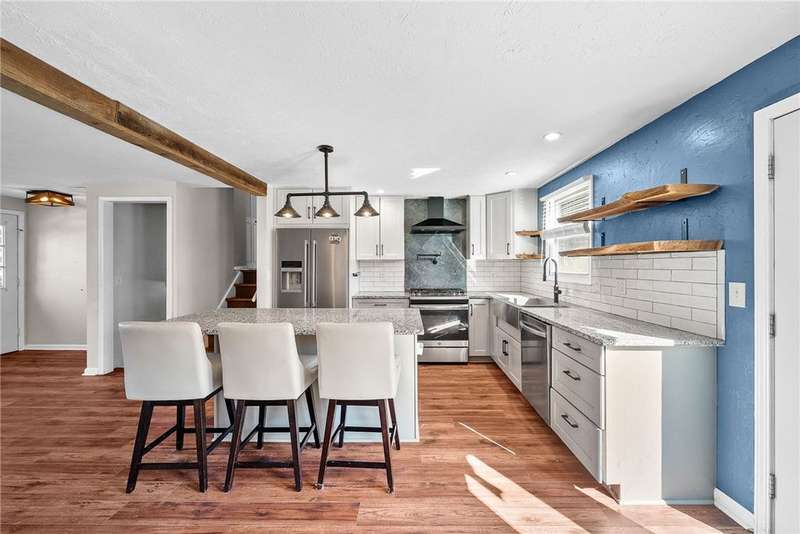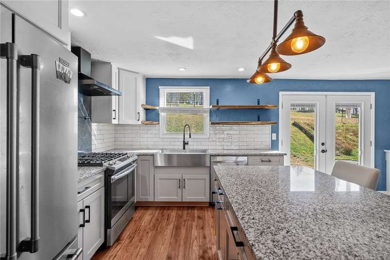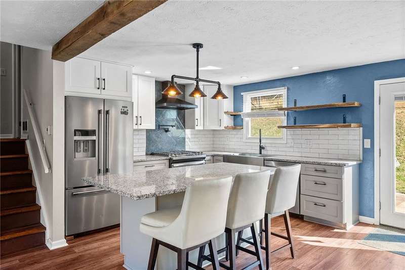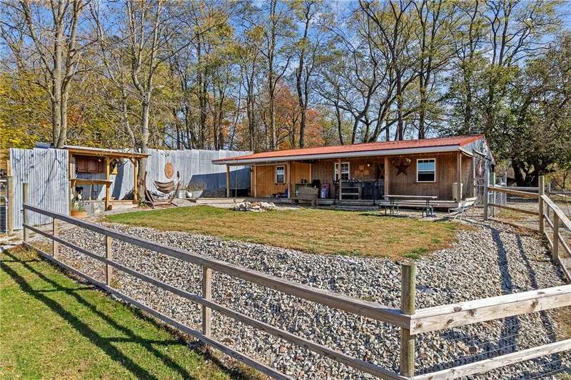 Equestrian paradise meets modern comfort! This spacious 4BR, 2BA split-entry home sits on a private 4-acre lot bordering Mingo Creek Park's 1000s of scenic trail acres. Inside, enjoy a newly updated kitchen w/stainless appliances, granite counters, modern cabinets, subway tile backsplash, & new flooring on the main level, primary suite, & hall. The primary bedroom features a walk-in closet & en-suite bath. A 2-car attached garage & big mudroom add convenience. The back 3 acres are fully fenced w/a beautiful barn offering padded stalls for 3 horses, a covered deck, fire pit area, built-in bar, & outdoor kitchen?ideal for entertaining! Additional outbuildings provide storage for equipment, animals, & more. The property also includes a fenced 16x32' heated in-ground pool, a 2000sqft fenced garden, 2 dry lots, & a 70ft round pen. A rare mix of privacy, recreation, & updated living?all in one exceptional property! Watch video tour link: https://youtu.be/tmKiO5YwZ0A