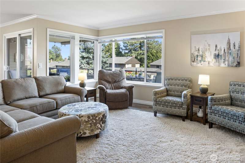 High quality, freshly renovated residence features new windows, HVAC w/ AC, electrical panel, car charging box, appliances & more! Spacious floorplan w/ expanded kitchen, 3 bedrooms upstairs & 4th room on lower level. Take in the extraordinary setting of impeccable grounds, vast open spaces, & expansive views from the large private deck. Turn the key to your next life chapter & begin enjoying the lifestyle & amenities within the exclusive Glen Acres gated community! HOAs include country club membership w/ full golf benefits. You'll love the convenient restaurant w/ lounge & resort-like activities at golf course, pool, pickleball courts & fitness center! Dues also incl. W/S/G & gas! Near Seattle & airport. 55+ Community w/ possible waiver.