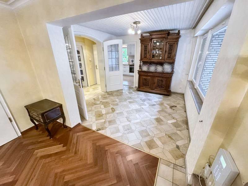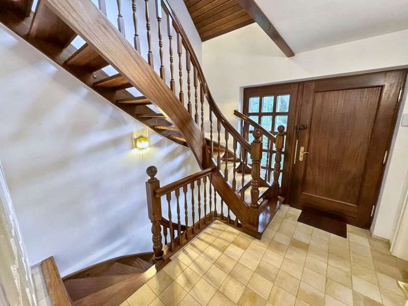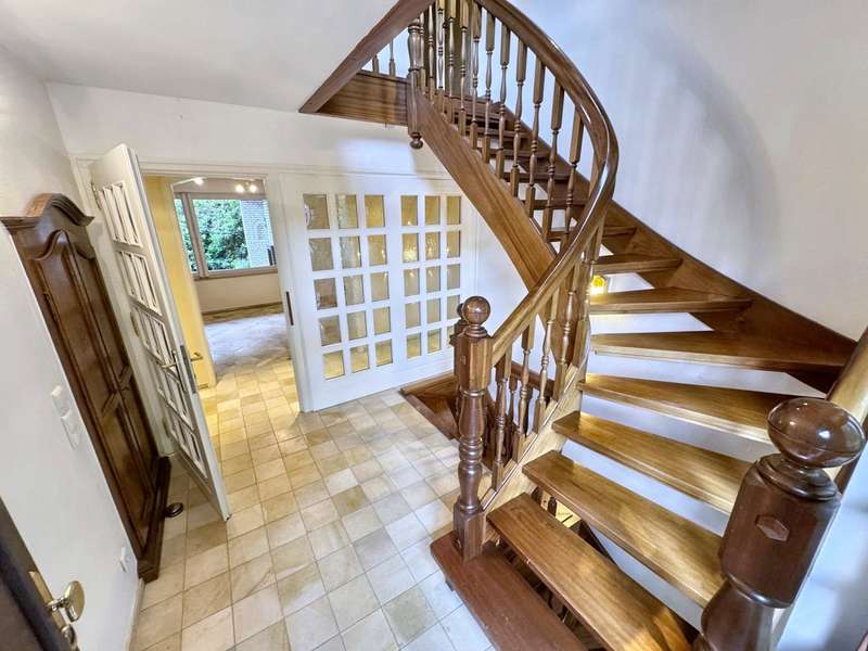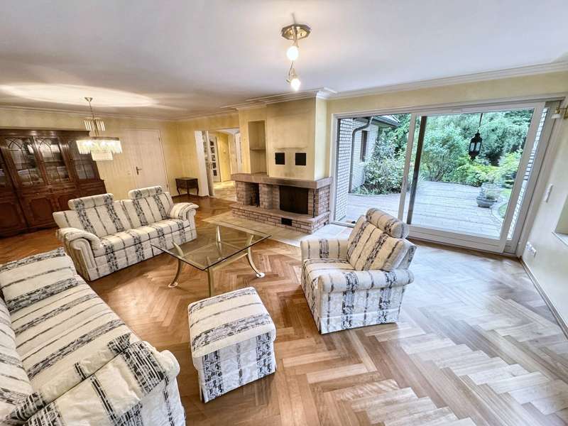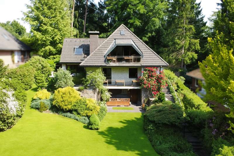 In one of the most sought-after locations in Hamburg-Eißendorf, idyllically and absolutely quietly situated in a cul-de-sac right on the edge of the forest, this spacious property presents itself as a true rarity. The street in which the property is located is characterized by continuity and stability - sales are a rarity here. All the more exclusive is this offer, which impresses with its special location, well thought-out architecture and high-quality fittings. Nestled in a lovingly landscaped garden with magnificent rhododendrons, roses and mature trees (including cherry, beech and fir), the house offers a special kind of natural living experience. The unobstructed view of the greenery can be enjoyed from the kitchen, study and both balconies. The location on the edge of the forest provides access to endless hiking trails and ensures a unique combination of living comfort and nature experience. Designed in 1984 by its former owner - an experienced civil engineer who has worked on several renowned buildings in Hamburg, among others - the house boasts an extremely well thought-out floor plan and the use of the highest quality materials. The special quality can be felt as soon as you enter the house. The inviting entrance area with the generously designed staircase conveys a first impression of a sense of space and value. From here, not only the first floor, but also the upper floor and the basement area, most of which can be used for living, can be accessed in a natural way. The entrance area is complemented by a guest WC and sufficient space for a checkroom. The first floor apartment impresses with a light-flooded, spacious living room with a fireplace and direct access to the terrace. The latter invites you to linger. There is enough space between the kitchen and living area for a dining area or to set up a grand piano. The modern kitchen has already been extensively renovated and has a practical pantry. Adjacent is an office with access to a covered balcony. It offers ideal conditions for concentrated work with a view of the greenery. A spacious bedroom and a bathroom with bathtub complete the first floor. The upper floor is divided into two separate areas. The left wing houses a small bedroom and another large room with access to the loggia, which offers a wonderful view of the greenery. The right wing was designed as an independent granny apartment with a bedroom, living area, kitchen and bathroom. This unit is ideal for guests or adult children. If required, it could also earn you a monthly rent. It could also be used as a multi-generational project. The fully heated basement offers three spacious hobby rooms that can be used in a variety of ways. One of the rooms has its own en suite bathroom and was previously used as a guest room - ideal for visitors or as a separate home office. The other two rooms can be designed entirely according to your ideas: Whether as a billiard room, party room, fitness area or creative studio - there are no limits to your imagination here. The basement also houses a boiler room with a modern system from 2013 and a separate bicycle room, which can of course also be used for other purposes. Another highlight is the large hallway with exterior access at ground level. This not only offers additional storage space, but could also serve as an excellent workshop. In short: the spacious basement impresses with its flexibility and wide range of possible uses - just as you need it. Unique tranquillity and quality - ideal for buyers looking for something special and close to nature!