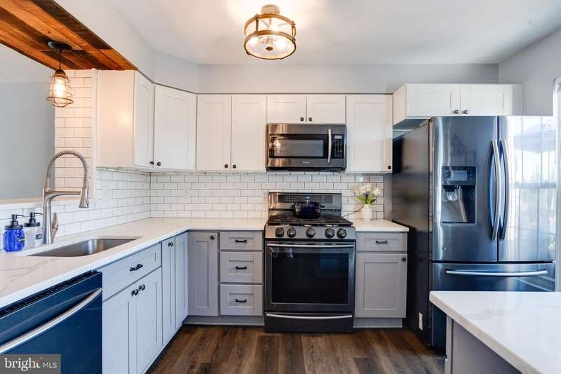 Lovely 3 bedroom, 2.5 bath townhome located in the desirable Greens at Smith neighborhood. Upon entering this home, you are greeted by a sunlit spacious living room. Beautiful fully renovated kitchen with quartz Calcutta countertops and stainless steel appliances. On the upper level you will find the primary suite roomy enough to comfortably accommodate a king size bed and oversized dresser. Two additional bedrooms and second full bath complete this level. The substantial lower level features the great room with a wood burning fireplace, bar, office area, laundry, storage and utility room. The door to the patio leads to a large, completely fenced-in backyard. Recent improvements: New rear fence, new luxury vinyl flooring in lower level 2025, all new windows, new washer 2024, new metal railing and front step 2023, new 30 year roof, kitchen fully renovated, new HVAC system, bathrooms renovated, luxury vinyl flooring throughout main level 2022. Conveniently located near shopping, dining, entertainment options and commuter routes such as I-695, I-83 and I-95. Redistricted to Summit Park Elementary for the 2024 - 2025 school year.