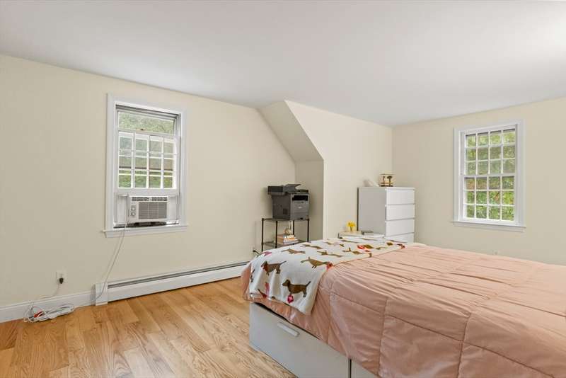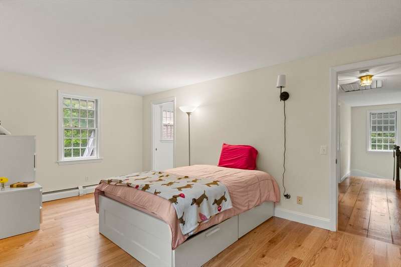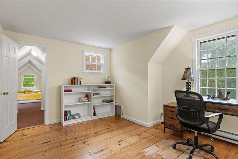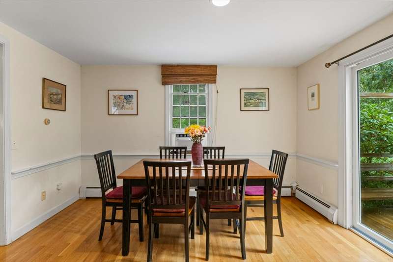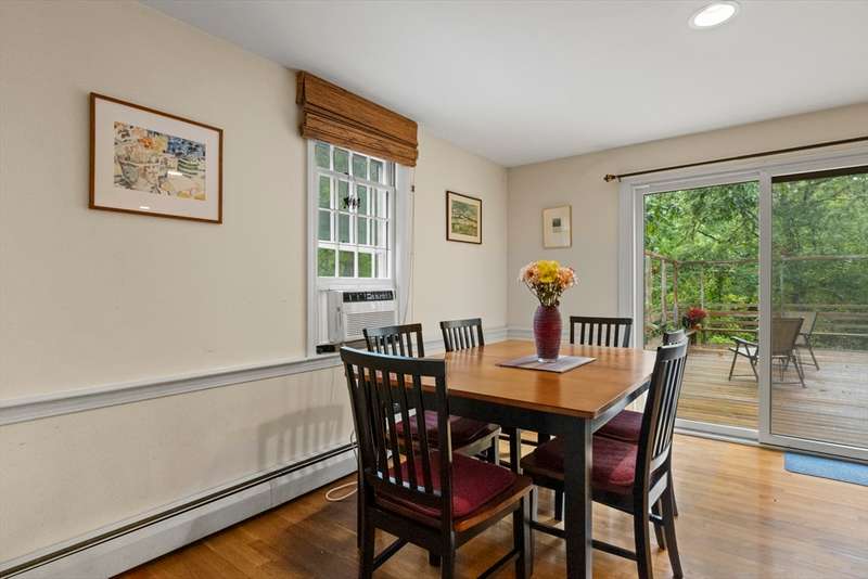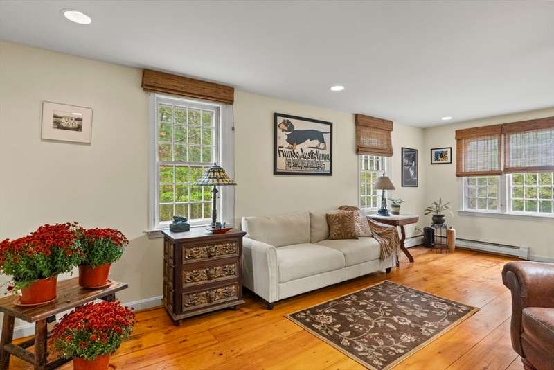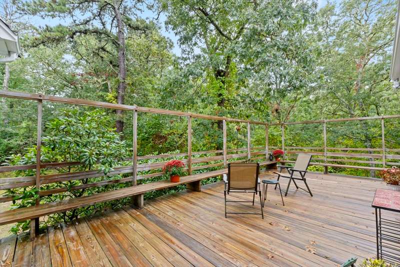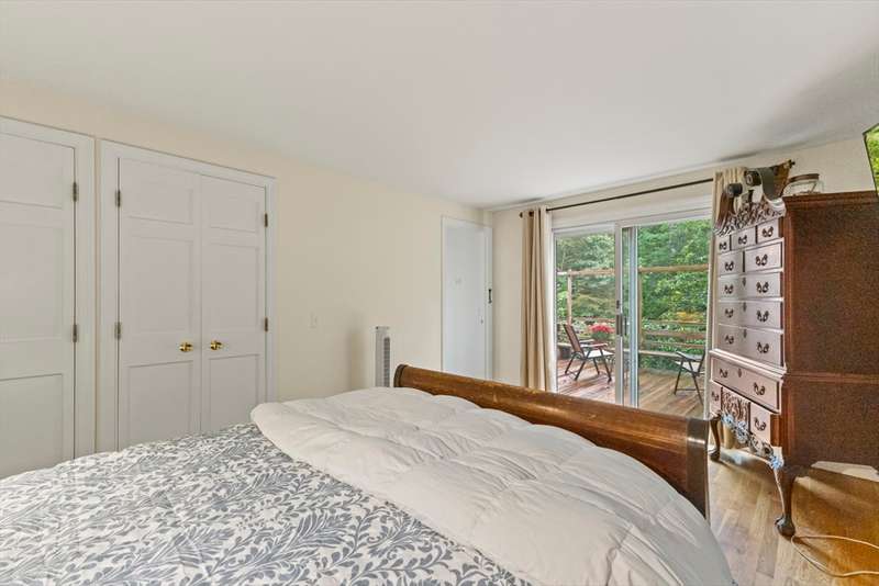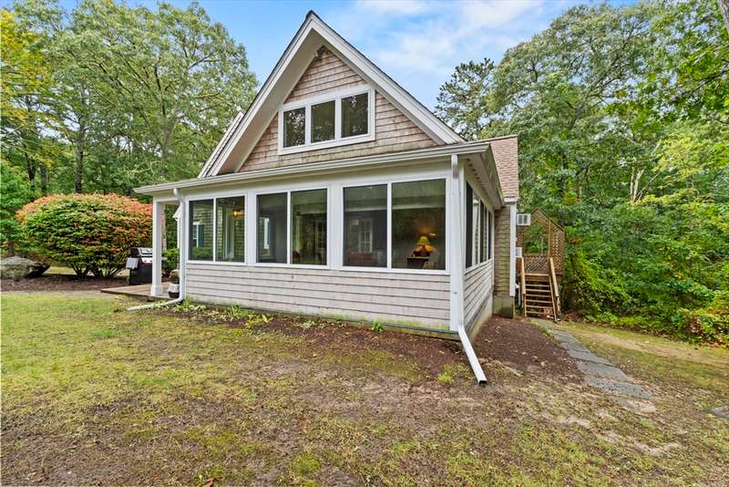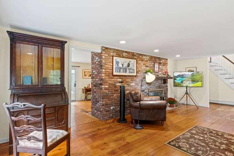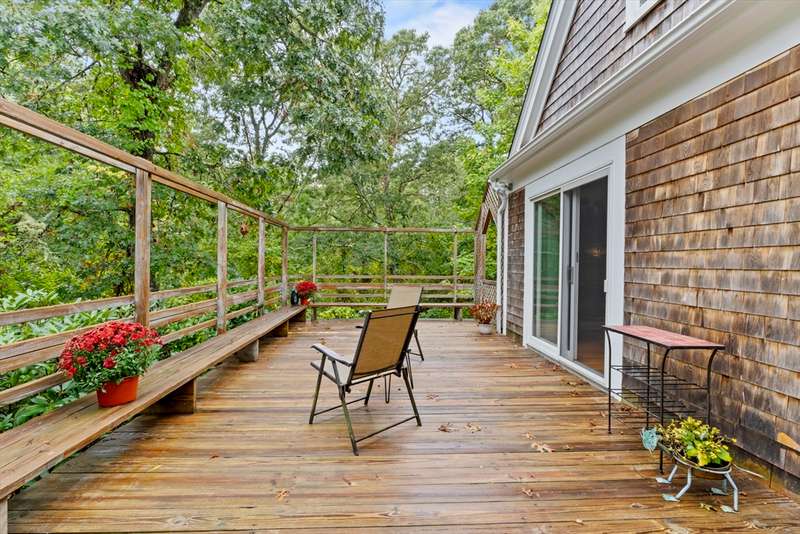 Full of character, this 3BR/2BA Cape is set on 1.47 private acres with deeded access to Upper Mill Pond and a private beach—perfect for swimming, kayaking, and endless outdoor fun. The sun-filled living room features a brick fireplace and wide pine floors, while the kitchen offers granite counters, custom cabinetry, another brick fireplace, and a slider to the deck. Just off the kitchen, a stunning 20’x20’ 3-season room with cathedral ceilings and expansive windows creates an ideal gathering space filled with natural light. A comfortable first-floor bedroom is paired with a nearby full bath, while upstairs you’ll find a spacious en suite bedroom plus a third bedroom with a loft and a balcony overlooking the beautiful 3-season room. Additional highlights include a new roof and an outdoor shower for after-beach convenience.