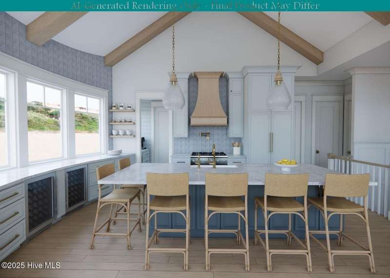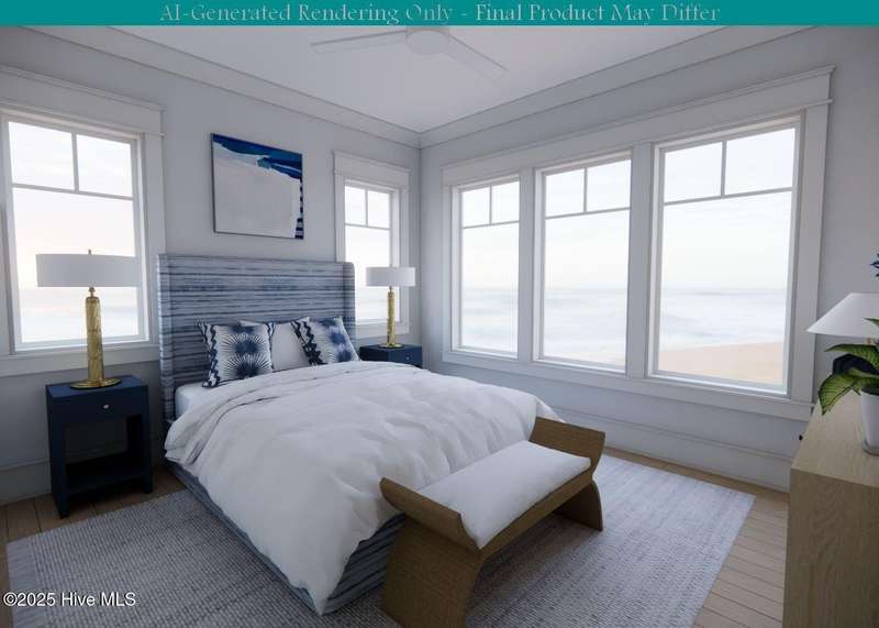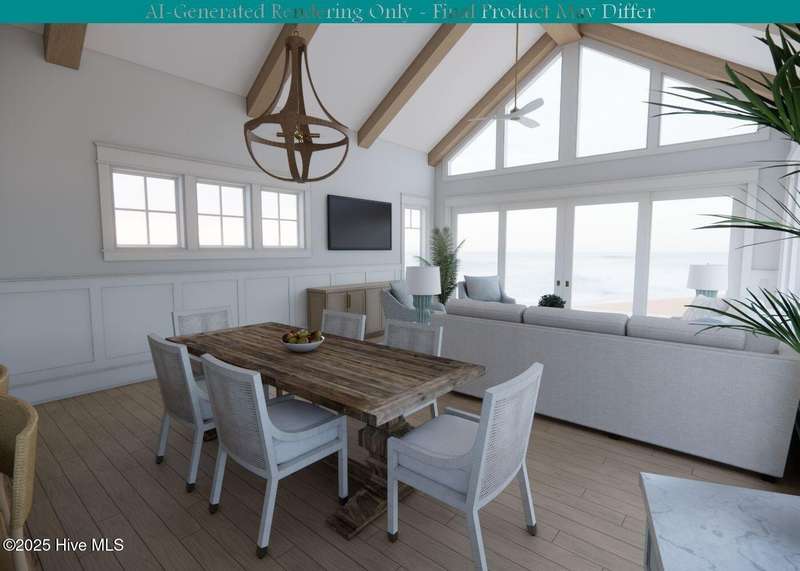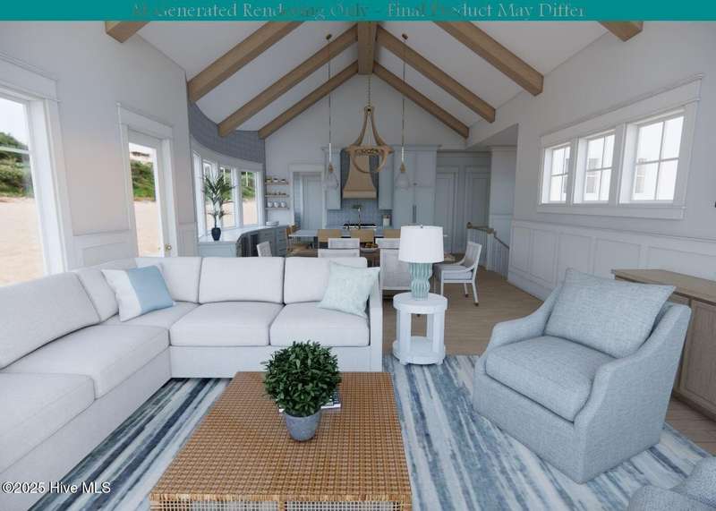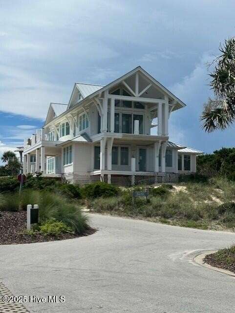 RARE OPPORTUNITY to own a Frying Pan Shoals' High Dunes Executive Retreat showcasing ocean panoramas off BOTH East & South Beaches! Imagine rocking on the covered front porch of this under-construction 6BR, 5.5BA sanctuary, listening to & watching waves on South Beach. Or stepping into the sunny first-level gathering space & spying East Beach surfers from inside or out on this floor's 2nd covered porch. Inside, hardwoods lead to 5 BRs. The 1st bright suite, cornered by light-sharing windows, provides Atlantic seascapes, porch access, & a private full BA. Down the hall, 2 more sunlit, window-cornered BRs share a Jack & Jill BA (one also enjoys water vistas). Two additional suites, overlooking South Beach, are likewise equipped w/ ensuites. The laundry room is at the end of the hall. This home's vaulted open-floor plan's top level is flooded w/ natural light from surrounding windows, which grant captivating water scenes. ALL-GLASS eastern wall showcases the Atlantic. Savor this spectacle inside or on the deep, covered lounging/dining porch. Chefs in the bayed gourmet kitchen will not only relish seascapes but also high-end appliances, a generous prep island/breakfast bar, & the walk-in pantry. Diners may eat in the elegant indoor dining area or alfresco on the dining porch. A comfortable living space is perfect for conversation, movie-watching, & relaxing. Tucked at the far end of this floor is the very private Primary Suite. Starting with an office alcove, it opens to reveal a haven boasting expansive ocean prospects, a large walk-in closet, & a pampering spa-like ensuite. A powder room completes this level. Ideally located, steps from East & South Beaches, & the Shoals Club, and just minutes to shops & restaurants. Lifestyle BHI club membership available. See attached docs for details on finishes, flooring & appliances. Interior photos are AI-generated renderings only. Also available in two 1/3rd shares - see listings for more details: 100524771 & 100524772.