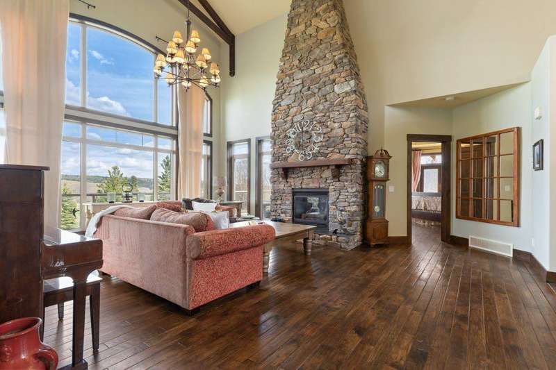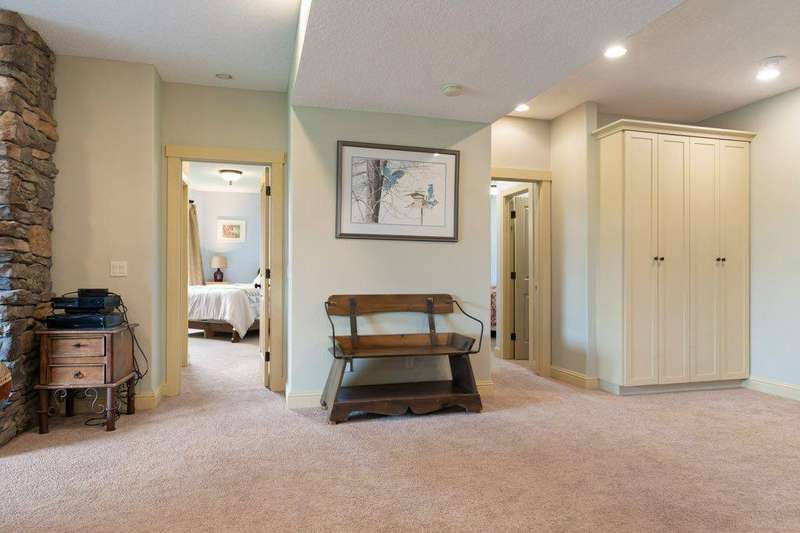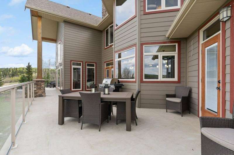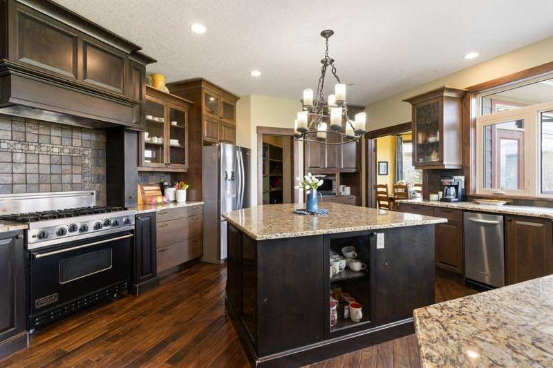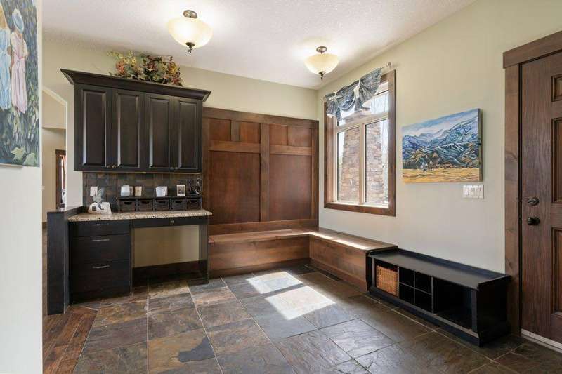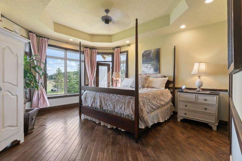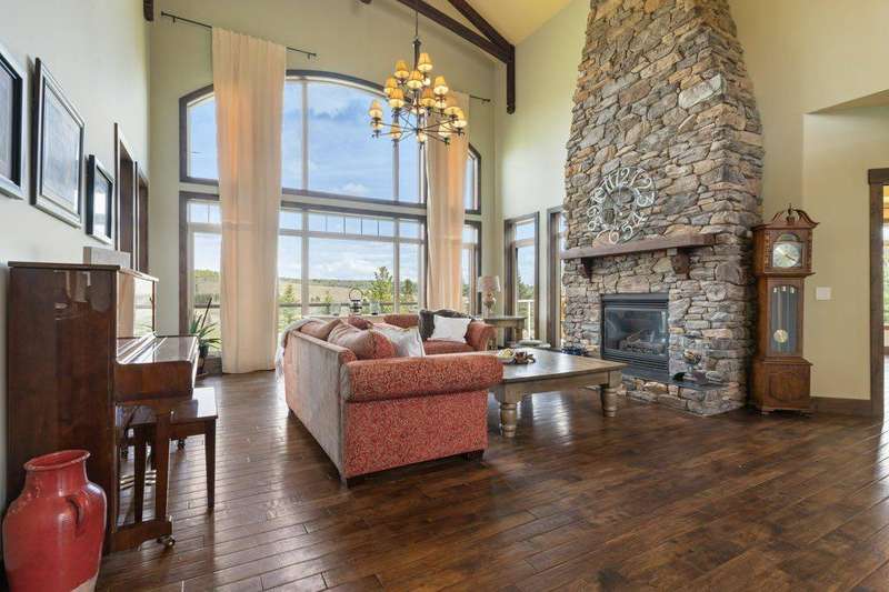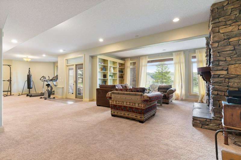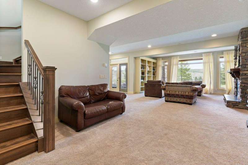 Nestled in the prestigious Priddis Creek Estates, this exceptional timber frame-style, walk-out bungalow offers the perfect blend of rustic charm and modern luxury. As you approach the residence, you'll immediately note the striking architectural details and thoughtful design that harmonizes with the surrounding natural landscape. Step inside to discover soaring ceilings and hand-hewn hickory floors that create a warm, inviting atmosphere throughout the main level. The open concept living space is anchored by one of four magnificent fireplaces found throughout the home, providing both ambiance and comfort. Expansive windows and strategically placed skylights bathe the interior with natural light while framing picturesque views of the surrounding countryside. The gourmet kitchen flows into dining and entertainment areas, ideal for both intimate family gatherings and larger social events. Custom built-in bookcases and clever storage solutions maintain the home's elegant aesthetic while providing ample space for organization. A sophisticated office loft offers a quiet retreat for working from home, while the walkout lower level features high ceilings, creating bright, airy spaces that defy the typical basement feel. The lower level continues the home's commitment to luxury with additional fireplaces and seamless access to the gorgeous outdoor space. Modern conveniences include energy-efficient in-floor heating, a recently upgraded boiler (3 yrs), comprehensive water treatment system, and on-demand hot water for ultimate comfort and efficiency. The triple garage provides abundant space for vehicles and storage, with room for recreational equipment for all your mountain adventures. Priddis Creek Estates offers an exceptional community lifestyle with its inviting clubhouse, riding arena and network of walking/biking paths. Enjoy the serenity of country living while maintaining proximity to urban amenities. Golf enthusiasts will appreciate being minutes from the renowned Priddis Greens Golf and Country Club, while outdoor adventurers will treasure the quick access to the majestic Rocky Mountains. This distinctive property represents a rare opportunity to embrace the coveted foothills lifestyle in one of Alberta's most sought-after communities. Experience the perfect harmony of rustic elegance and contemporary comfort in this extraordinary timber frame home. Contact your favourite REALTOR® today for a private showing.