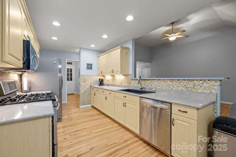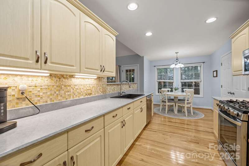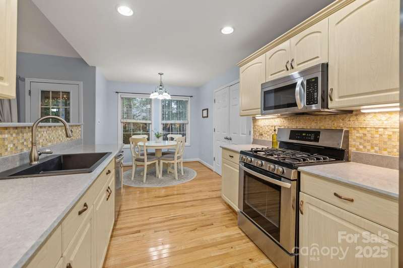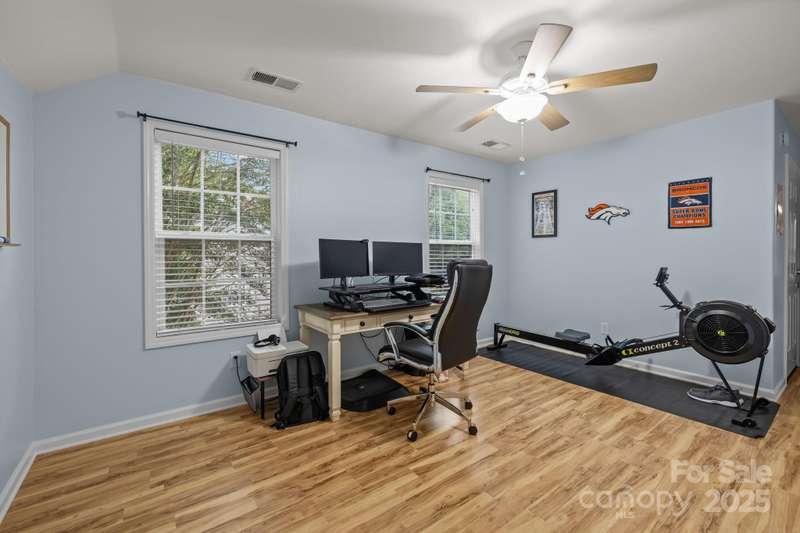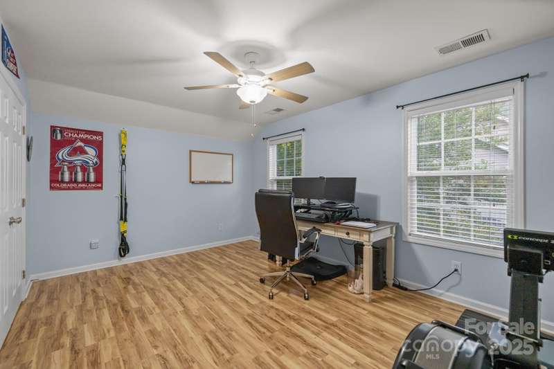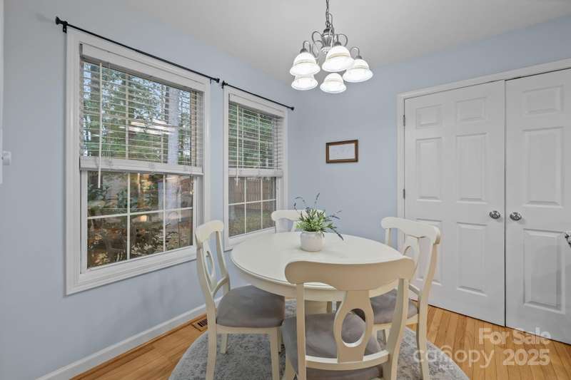 Charming Home with Primary on Main in a Fabulous Location - close to shopping, schools and interstate. Step onto the welcoming rocking chair screened front porch and into a home designed for both comfort and function. The main floor features beautiful wood floors and an open floor plan that creates an easy flow for everyday living and entertaining. A spacious living room sits at the heart of the home, offering serene views of the private backyard and direct access to the screened back porch-perfect for relaxing. The split-bedroom layout ensures privacy: the primary suite includes an updated ensuite, large walk-in closet, and private access to the back porch, while two additional bedrooms share a full bath on the opposite side. Upstairs, a flexible 4th bedroom and bonus room boasts built-ins, an office nook, and plenty of storage. Additional features include a 2-car garage, partially fenced yard, and a sought-after neighborhood with a private park. This well-cared for home blends charm, privacy, and practical living in one desirable package.