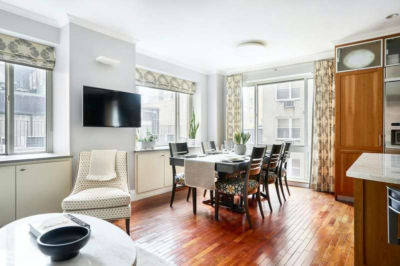 Available furnished. The Richmond is located in the heart of the Upper East Side on 80th street and 3rd Avenue This spacious over 2000 sq ft home offers everything one could need. Its open-concept kitchen with living and dining areas are at its core - ideal for entertaining and providing ultimate functionality for social gatherings. The well-appointed kitchen includes a generous quartzite island that serves as a prep area, serving space or for casual dining - the ideal perch for a quick bite, cooking assistant or wine-sipping guest. Stainless steel appliances, including extra refrigerator drawers and abundant cabinets insure you will have plenty of room for all your dishware and glassware. The dining area can host a large table with seating up to 10. Completing this modern open concept is a comfortable living space with custom shelving and built-in storage. A separate bonus den / media room adjacent to this open space provides a second living area that can serve as a casual playroom or open the wall and create an expanded more formal living area. The primary bedroom and second bedroom face east and enjoy the morning light with open city views. The primary suite includes an ensuite bath with both a bathing tub and walk-in glass shower. Luxurious bathroom finishes and fittings and vast closets enhance this peaceful primary suite. The generously proportioned third bedroom also has an ensuite bath - located on the opposite end of the home it creates a perfect space for sleeping and work. Addressing the current need for work-from-home space, an office alcove is discretely tucked away behind large sliding paneled doors off the gallery.