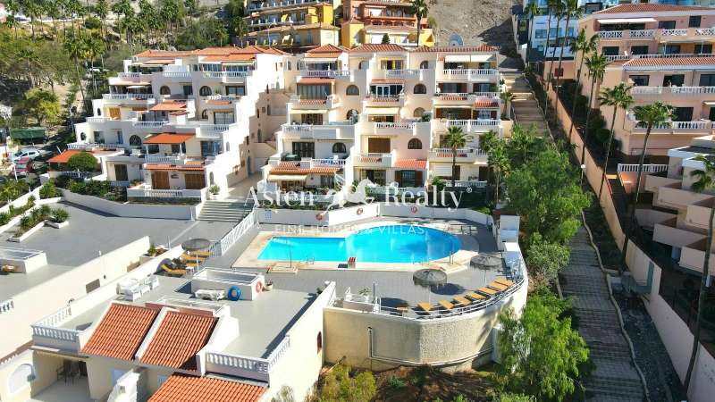 The complex offers its residents a large heated pool and carefully maintained garden areas, creating a welcoming and relaxing atmosphere. The property’s location is truly privileged – right next to a park and within walking distance of key points: X-Sur Shopping Centre (500 m), Aqualand (300 m), Siam Park (1300 m) and Siam Mall Shopping Centre (1800 m). The nearest beaches – Playa de Torviscas, Playa de Fañabé and Playa de la Pinta – are just a few minutes’ walk away.