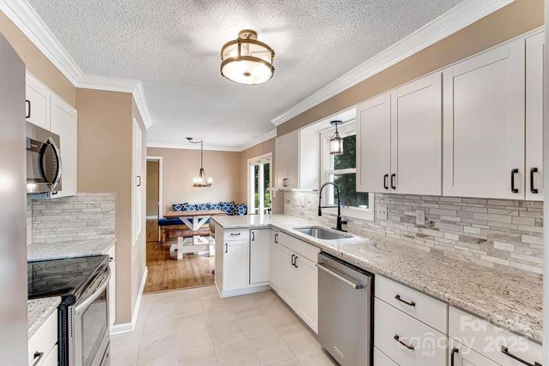 This beautifully updated Cape Cod home sits on a landscaped half-acre lot in Lincolnton, within the desirable North Lincoln school district. The property features mature plantings, fresh mulch in the flower beds, and a peaceful outdoor setting perfect for relaxing or entertaining. Inside, the main level offers a spacious primary bedroom with an ensuite bath, dual vanity, and walk-in closet. Upstairs, you'll find two additional bedrooms and a full bath. The living room includes an electric fireplace insert, while the partially finished basement features a recreation room with a cozy gas fireplace and new carpet throughout. Recent upgrades completed in 2025 include all-new kitchen cabinets, new tile flooring in the kitchen and upstairs bathroom, refinished hardwood floors on the main level and staircase, new carpet on the basement stairs and in the basement, a brand-new roof, updated vanity and mirror in the upstairs bath, fresh deck railing, and new mulch in the landscaping. The community has no HOA, but residents have the option to join the neighborhood pool just a few houses down-offering the best of flexibility and amenities. With thoughtful renovations and timeless charm, this home blends comfort, style, and convenience in a welcoming setting. Nestled between Denver and the town of Lincolnton, it offers easy access to major roadways and nearby shopping, blending peaceful living with everyday convenience.