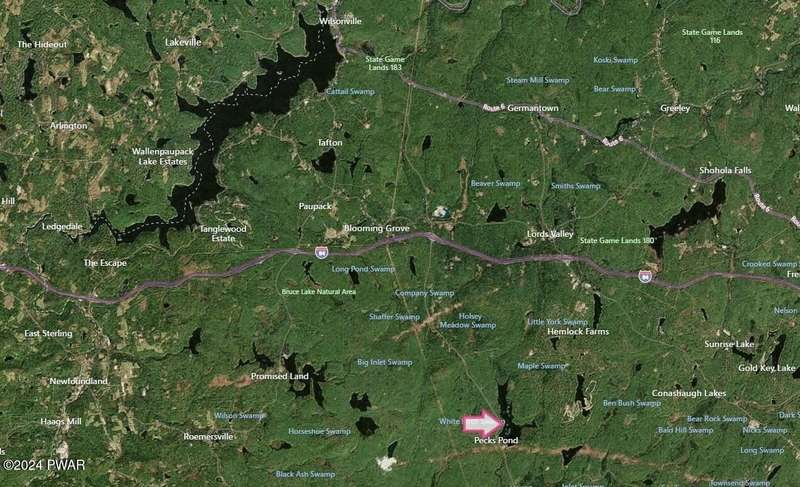 PA State Cabin located across from Pecks Pond in the Delaware State Forest...Do you hunt or fish? Do you hike or kayak? Do you just want to relax? Then this cabin is for you...Come take a look at this well cared for cabin...Features include spacious Living Room with wood burning stove and views of Pecks Pond, eat-in kitchen with cathedral ceilings, 2 bedrooms, being sold AS IS with most furniture and boat included... Out House, no well, storage shed, lots of space for parking...ATV Trails at Maple Run and Burnt Mills off of Route 402...Only 15-20 minutes from Lake Wallenpaupack...Must be a PA Resident to Purchase a PA State Cabin. Cash Transaction only.