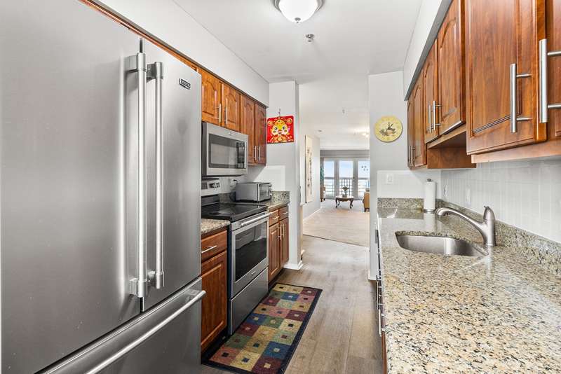 Welcome to refined waterfront living with captivating views! This beautifully updated 3rd-floor condo in the Le Parc community offers the perfect balance of comfort, convenience, and style. Freshly repainted throughout and enhanced with updated flooring, this home radiates modern elegance from the moment you step inside. Arrive effortlessly via the convenient elevator and enjoy the ease of one-level living. The spacious family room, bathed in natural light, creates an inviting setting for both relaxing and entertaining. The kitchen is a standout—featuring cherry cabinetry, granite countertops, stainless steel appliances, a recently replaced disposal (November 2024), and a unique glass-block window that brightens the space with a warm glow. All light fixtures throughout the home have been tastefully updated, adding to the fresh, contemporary feel. The primary bedroom serves as your private retreat, complete with a walk-in closet, separate vanity area, and a full bath with a luxurious jetted tub. A second generously sized bedroom and an additional full bath ensure comfort and flexibility for guests or a home office. In-unit laundry with an included stackable washer and dryer adds everyday convenience. Beyond its stylish interiors, this condo’s location is unmatched—just minutes to I-495, downtown Wilmington, shopping, medical facilities, and a variety of dining options. With one of the lowest condo fees in the community and strong rental potential, it’s an exceptional opportunity for both homeowners and investors alike. Don’t miss your chance to claim this waterfront haven where modern updates meet serene living.