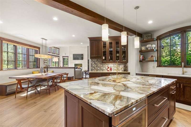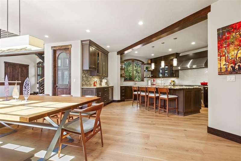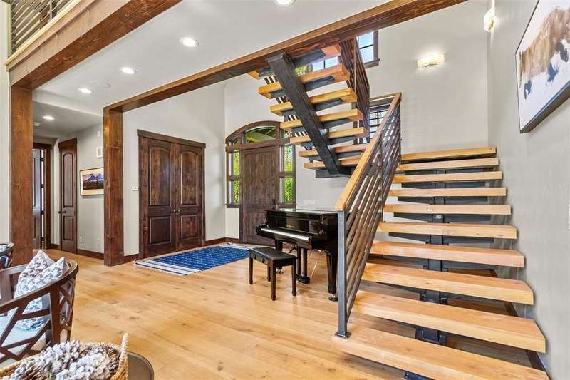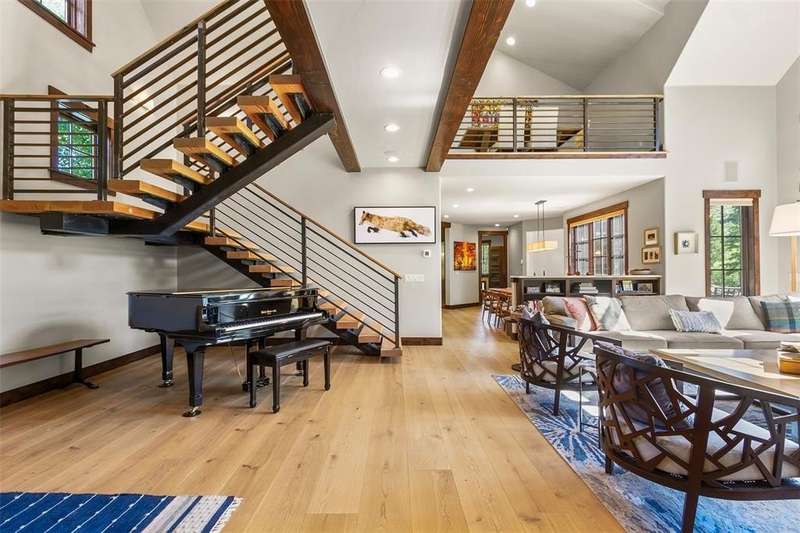 Highlands hidden treasure! Supremely private edge of Breckenridge setting where Classic Colorado meets Mountain Contemporary. Extensively renovated throughout, featuring magnificent chef's kitchen, sumptuous main level primary suite, spa grade baths, fireplaces, wide plank hardwood flooring and much more! Sunny, level 1 ac+ site is bordered by open space and Jack Nicklaus Elk Course in the coveted Highlands Park neighborhood. Deer, elk and moose are your neighbors! Hiking and cross-country course are right out your door in this ultra private, convenient setting. So quiet you can hear the geese winging overhead. Not included in square footage is 432 sqft BONUS ROOM above third garage. Fully finished with TV/game center, electric decorative fireplace; perfect for sulky teen refuge or even garage band! Room for all of the toys below and band space above. Fenced backyard with private hot tub. Incredible opportunity for contemporary in-town living without the noise and crowds. Vacant and easy to show. See it today!