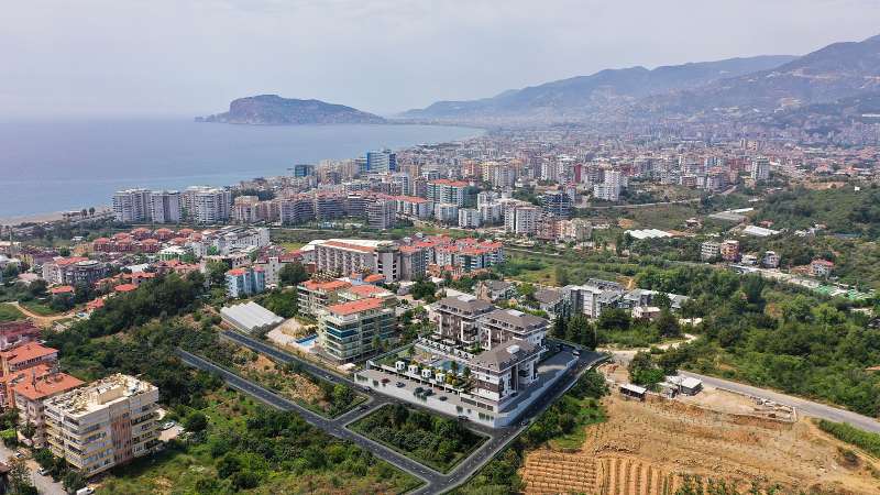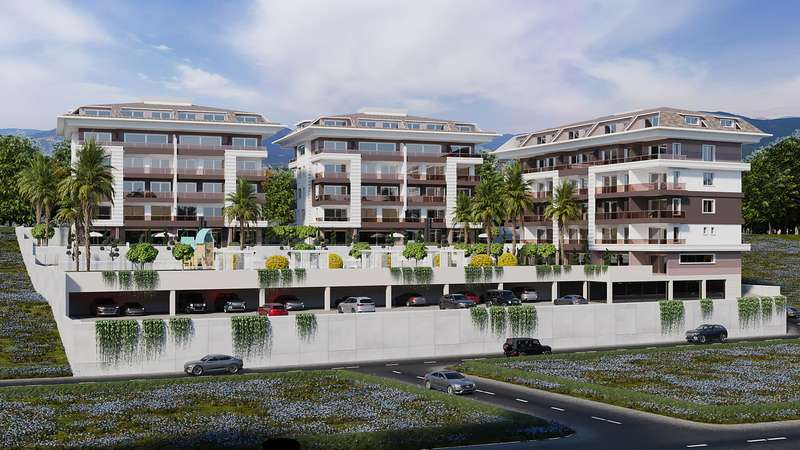 The project is not only peacefully located in nature but also close to daily and social amenities. In Alanya apartments for sale are 675 meters from the beach, 1.9 km from the university, 2.3 km from the hospital, 3.3 km from the shopping mall, 6 km from Alanya city center, and 33 km from Gazipasa Airport.