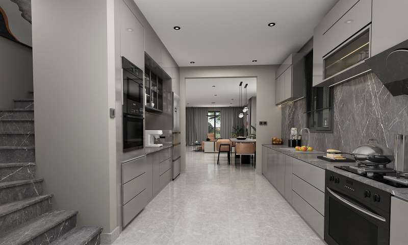 The modern apartments include high-quality flooring, lighting fixtures, balcony and staircase railings, shower cabins, bathroom and kitchen cabinets, as well as complete electrical, heating, and water installations.