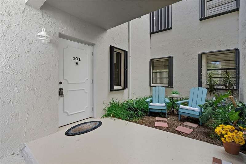 First-floor corner condo with tranquil lake views! 2/2 with updated kitchen, accordion shutters, screened lanai, and private patio off bedrooms. Enjoy pool, private beach access, and marina dockage (as available). Perfect for year-round living or your island getaway. Rm sz approx.