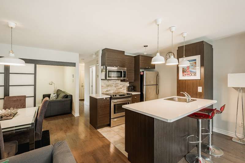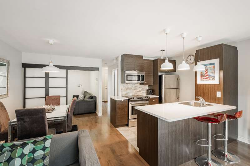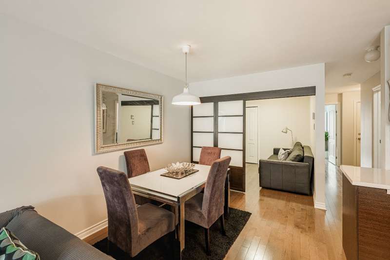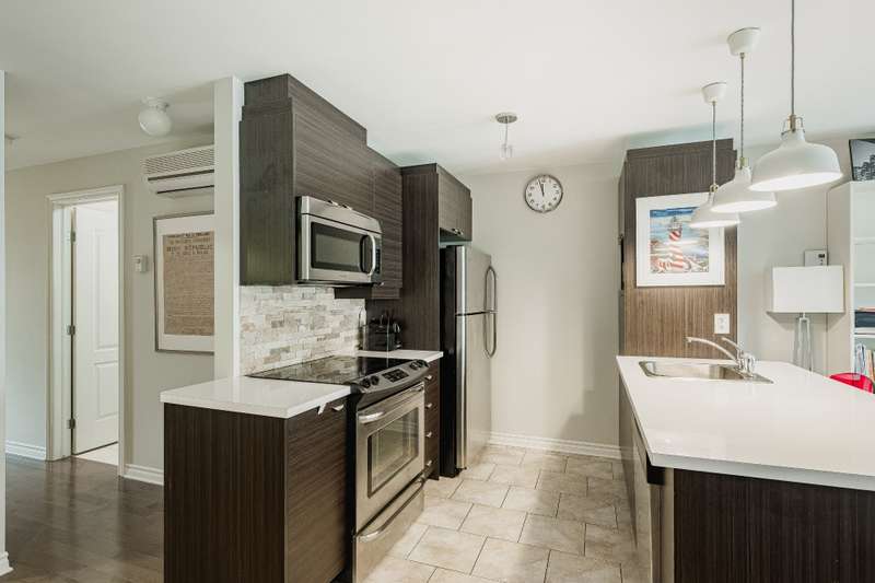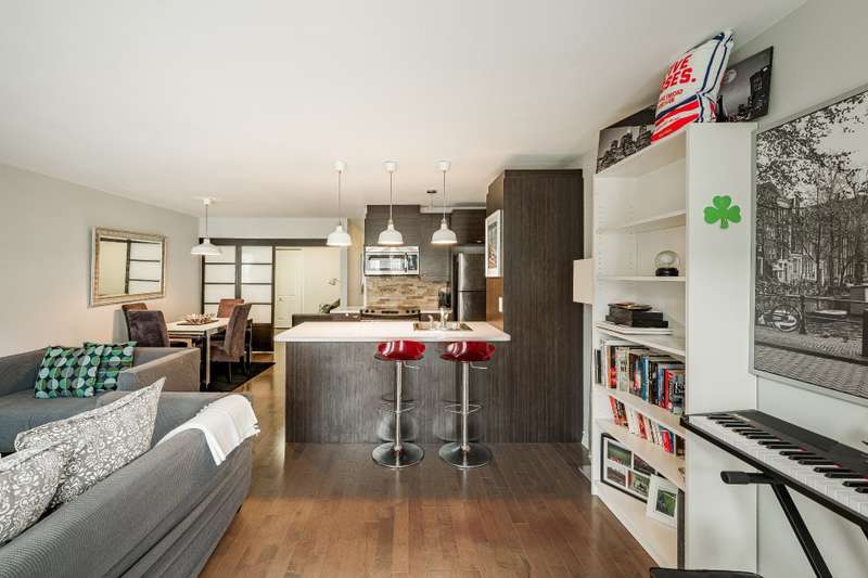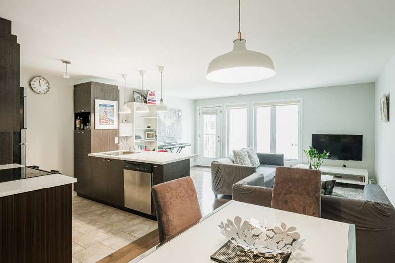Modern 2-bedroom condo in Pointe-Saint-Charles with private rooftop terrace, 2 balconies, parking, and A/C. Enjoy an open-concept layout, hardwood floors, large windows, and generous storage -- all just steps from the Lachine Canal, Charlevoix metro, and Notre-Dame's restaurants. Located on the second floor of a well-managed building with low condo fees, this turnkey unit offers comfort, privacy, and unbeatable value. An exceptional lifestyle in a vibrant location - a must-see!