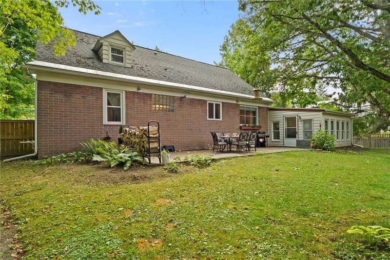 Welcome to 25 E Main Street, a charming brick Cape Cod in the heart of Dryden Village. Built in 1949 and beautifully updated, this 4-bedroom, 2-bath home blends character with modern convenience.Step inside to find hardwood and tile throughout, a wood-burning fireplace, and a bright sunroom perfect for morning coffee or a cozy reading nook. The spacious kitchen and dining areas flow easily for everyday living, while the large laundry room and abundant storage add practicality. Recent updates include a remodeled lower-level bath, refinished hardwood stairs, new drywall and paint, modern tile flooring in the sunroom and laundry, and a radon mitigation system for peace of mind.Enjoy the fully fenced yard with a seasonal creek, mature trees, and a large back deck ideal for entertaining. A storage shed, one-car garage, and low-maintenance landscaping make outdoor living easy.Located on a walkable street just steps from cafes, shops, restaurants, schools, and trails. Fiber internet, upgraded water service, and efficient ducted heating round out the many improvements.Only minutes to Ithaca, Cornell University, and the Finger Lakes, this home offers small-town charm with unmatched convenience.