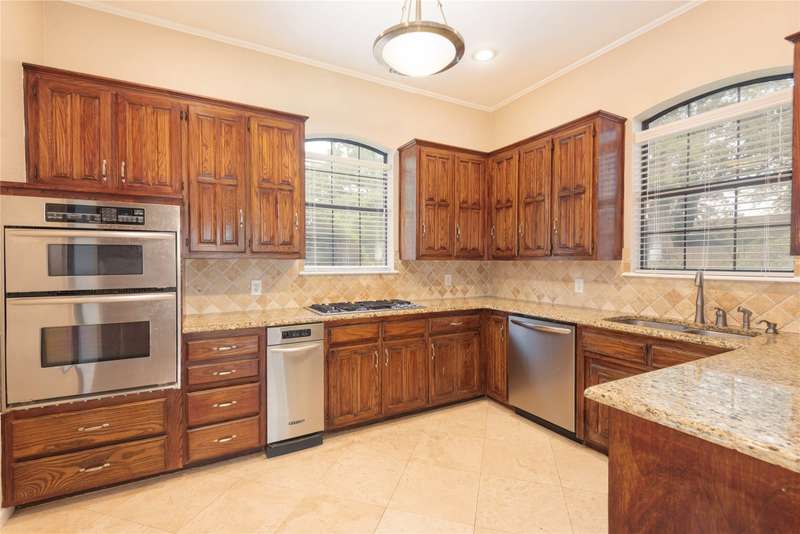 Great home with stunning lake views and exceptional amenities. Nestled just steps from the serene Lake Arlington, this lovely property offers the perfect blend of comfort, luxury, and convenience. This home is an ideal retreat with five bedrooms and three and a half baths on nearly half an acre. With breathtaking sunsets and water views from almost every room, this property redefines tranquility. The entryway welcomes you into an expansive living and dining area adorned with gleaming hardwood floors, a cozy fireplace, and panoramic views of the backyard and pool. The gourmet kitchen is a chefs dream, boasting Travertine floors and granite countertops,Gas cooktop, stainless steel appliances, double oven, trash compactor and a spacious breakfast room with a built-in hutch. The primary bedroom on the first floor offers hardwood floors and an opulent en-suite bath featuring tile flooring, double vanities, a jetted tub, and a walk-in frameless shower. Additional highlights of the first floor include: A second living area with a wet bar, built-in shelving, and a fireplace, utility room and a half bath, a large covered flagstone patio perfect for outdoor entertaining, additional driveway parking for RV and hookups. The second level of this home is equally impressive, offering: An additional living space with two balconies showcasing lake and pool views, A convenient wet bar, Four more generously sized bedrooms, two bathrooms and second laundry room. Enjoy access to Lake Arlington with a fishing pier, boat dock, and trails. The property also boasts a large diving pool and expansive outdoor spaces that ensure every moment feels like a getaway. Located in the sought-after Martin High School district, this home offers the perfect blend of privacy and convenience.Whether savoring coffee on the front balcony or unwinding on the back patio, this property delivers everything you need for living at its finest.