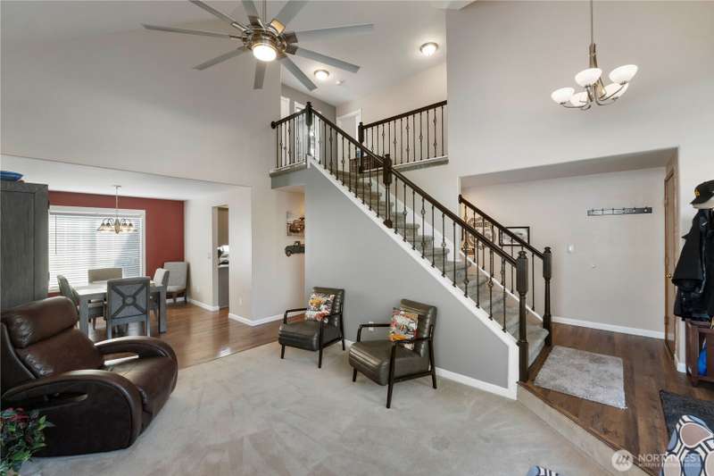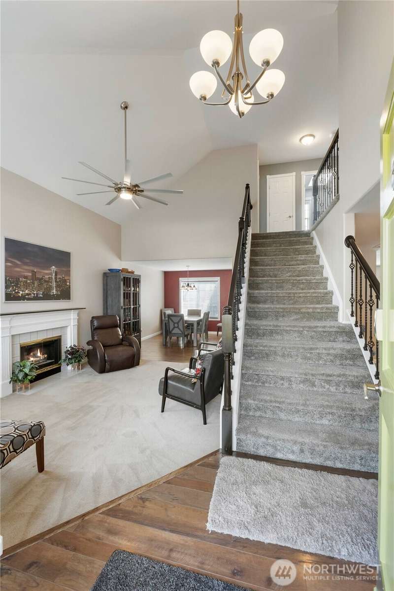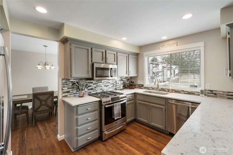 Welcome to Riverbend Estates Where Comfort Meets Stunning Views! Located in the highly sought-after Riverbend Estates community & within the award-winning Sumner School District, this beautifully maintained 3-BR, 2.5-BA home sits on a half acre+ & has a view of Mt. Rainier. Step inside to find thoughtful updates, incl newer roof(2019), A/C, furnace, &WH, new carpet, engineered hardwd, two updated BA. The updated kitchen has quartz countertops, tile backsp, SS appl, & gas stove. Soaring vaulted ceilings in the formal living/dining rms, w a gas fireplace & a fam rm w a wood-burning FP. The wide stairs leads to a spacious primary suite w 5-piece bath, 2 addn'l BR. New Trex deck, mature landscape, Sprinklers, new gutters, 3 car Pre inspected